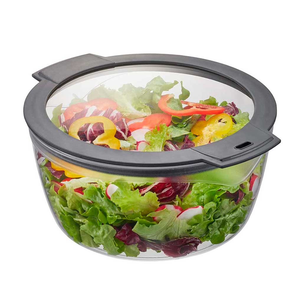 - Es de lo más polivalente, con ella tienes una ensaladera, un colador, un centrifugador y un recipiente hermético para conservar los alimentos.