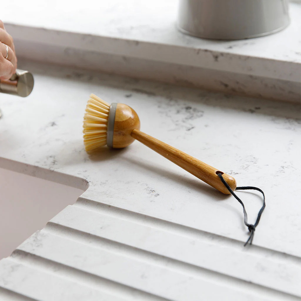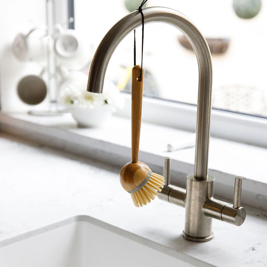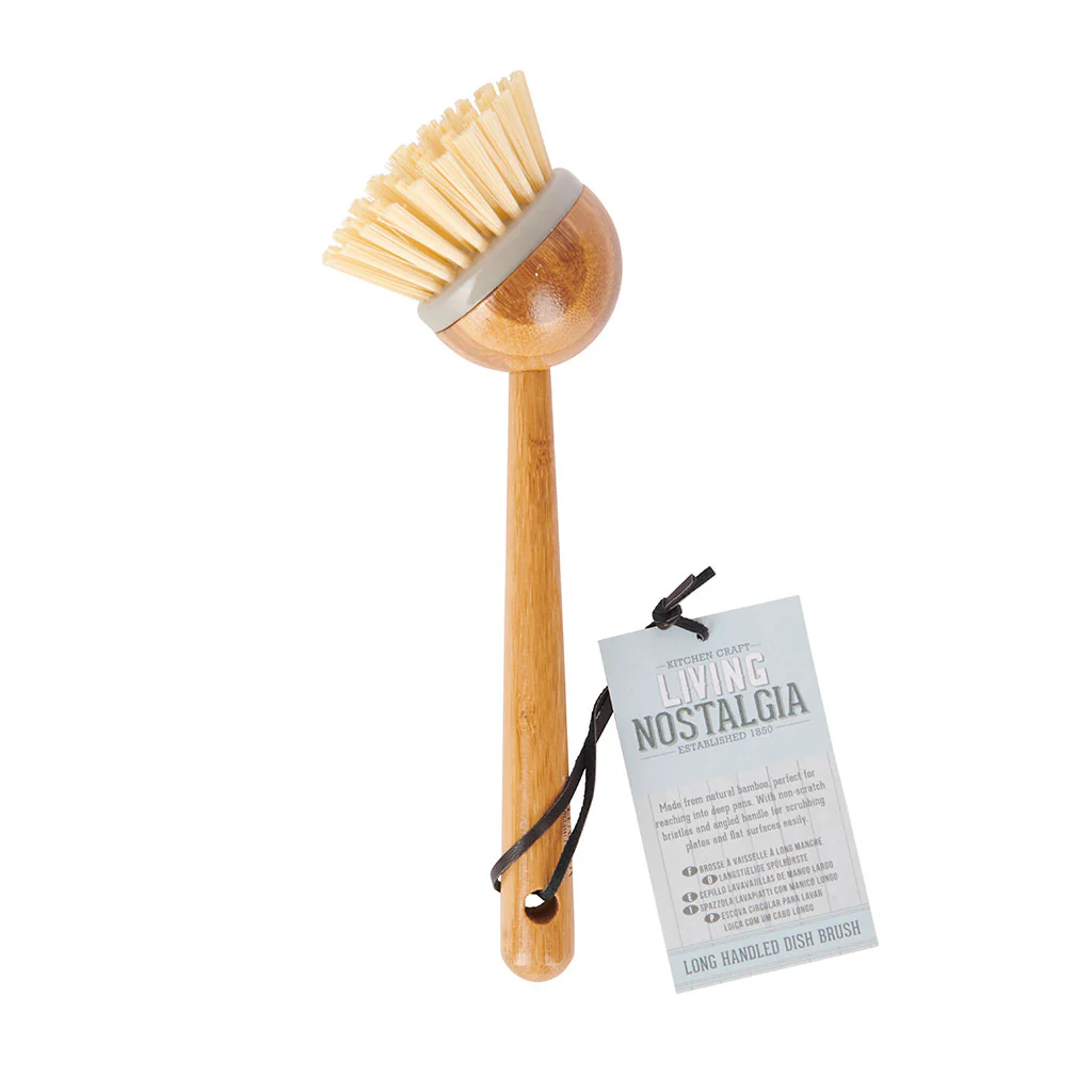 Un clásico de lo más práctico, el cepillo de limpieza de la colección Living Nostalgia de KitchenCraft es un cepillo con mango de madera de bambú y fabricado con cerdas de nylon, que resulta ideal para limpiar platos y utensilios cómodamente, retirando los residuos más grandes y dejando una superficie limpia.