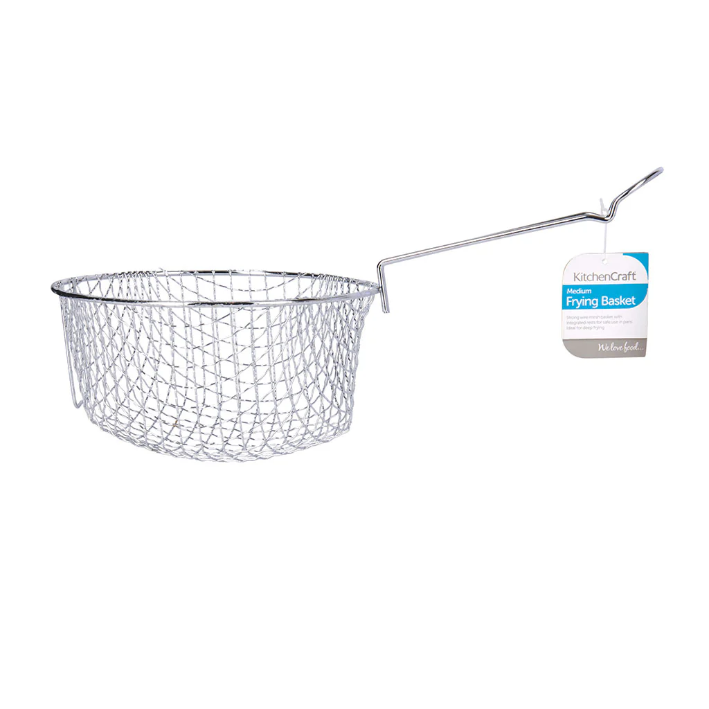 La Cesta de acero inox para freír de KitchenCraft es el accesorio ideal para tu sartén alta, cazo, olla o freidora bombeada, con el que podrás freír los alimentos de forma segura, cómoda y muy práctica. Su amplia cesta de malla de alambre y a su largo mango te facilitarán la fritura, escurriendo todo el aceite al acabar.