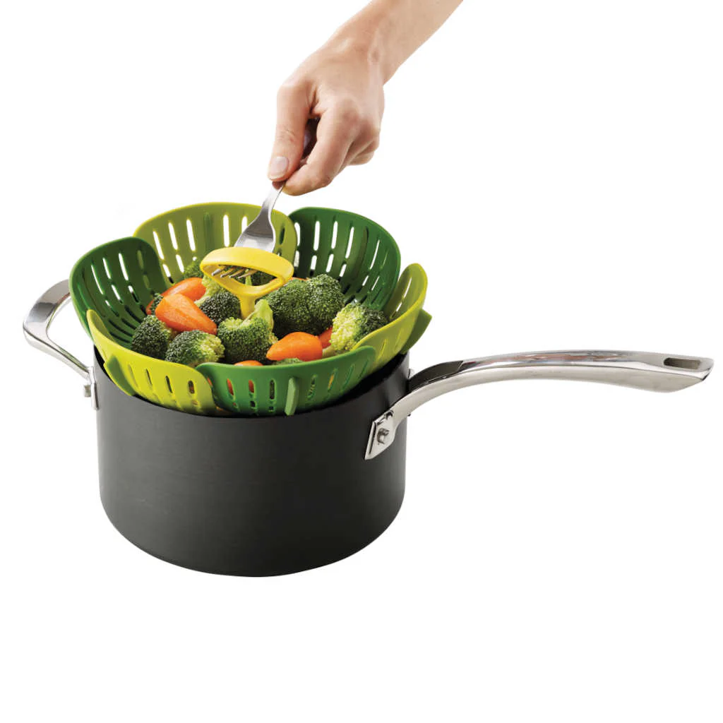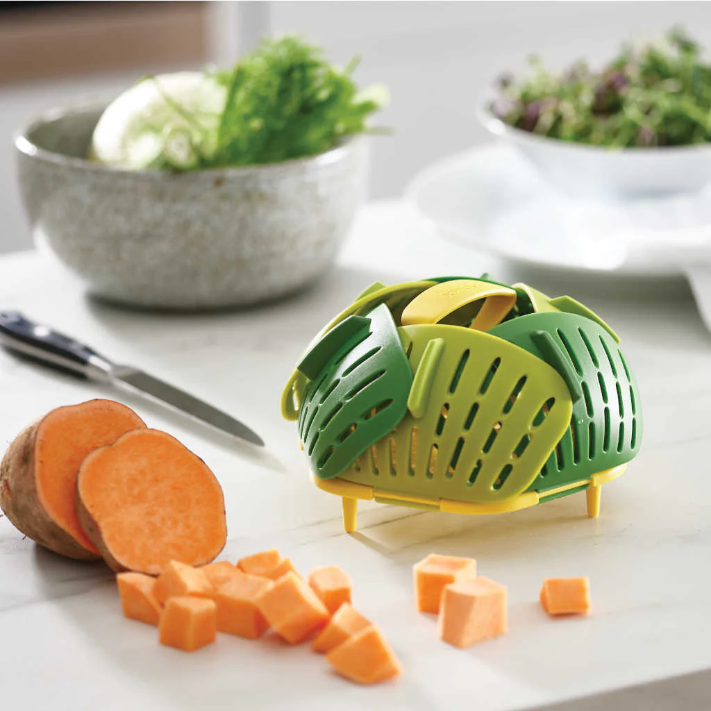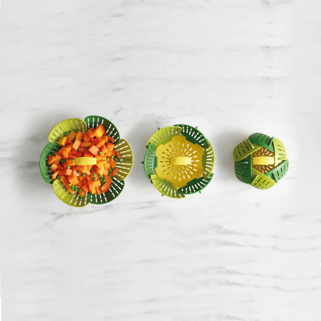 Por qué nos gusta la Cesta de vapor plegable Bloom Joseph Joseph