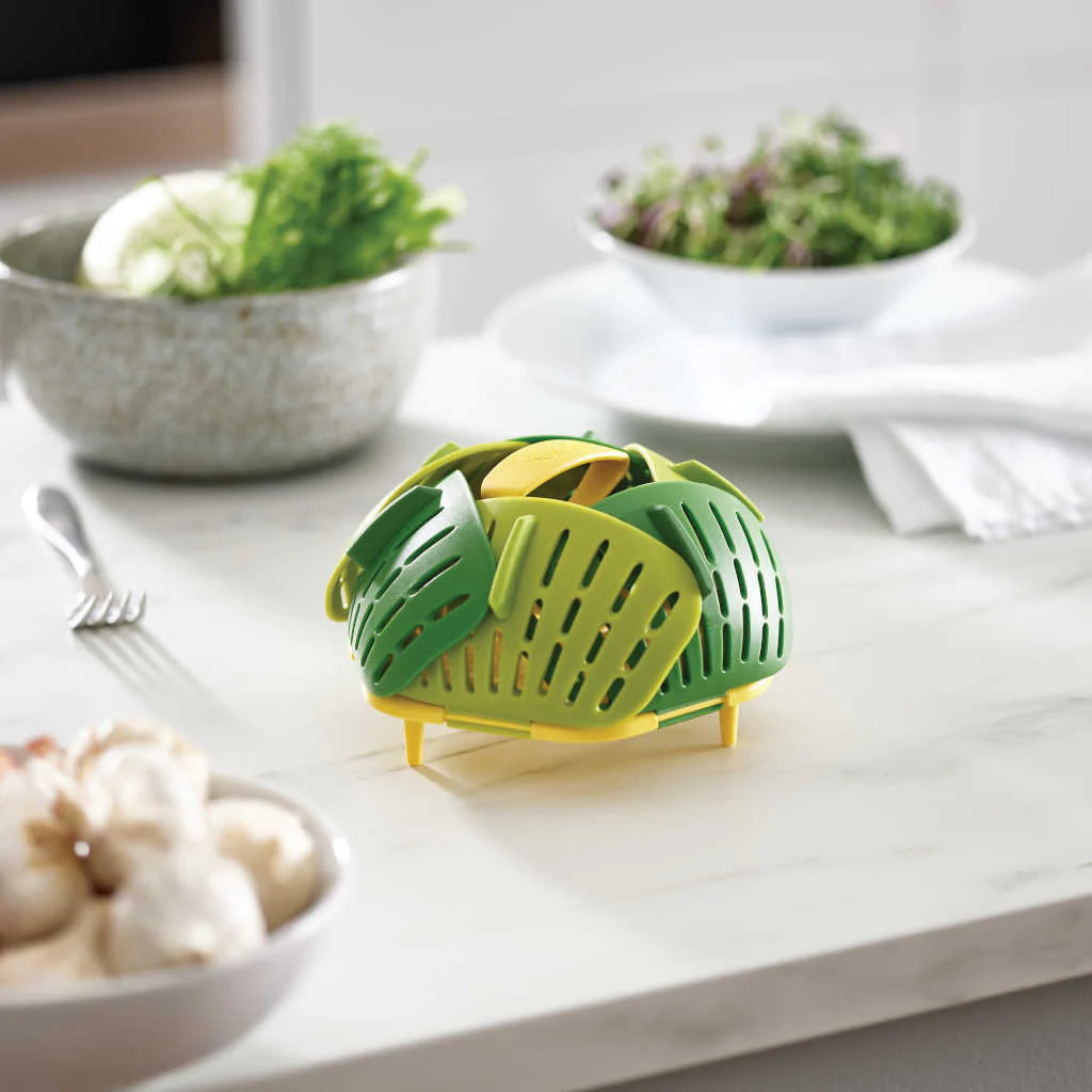 La Cesta de vapor plegable Bloom Joseph Joseph es una vaporera plegable muy práctica y tan bonita como una flor. Sus aletas autoajustables en forma de pétalos se abren y cierran adaptándose a la olla, cazo o cazuela en la que la coloques para cocinar al vapor. Fabricada en silicona resistente al calor, es perfecta para todos tus utensilios, ¡incluso los antiadherentes!