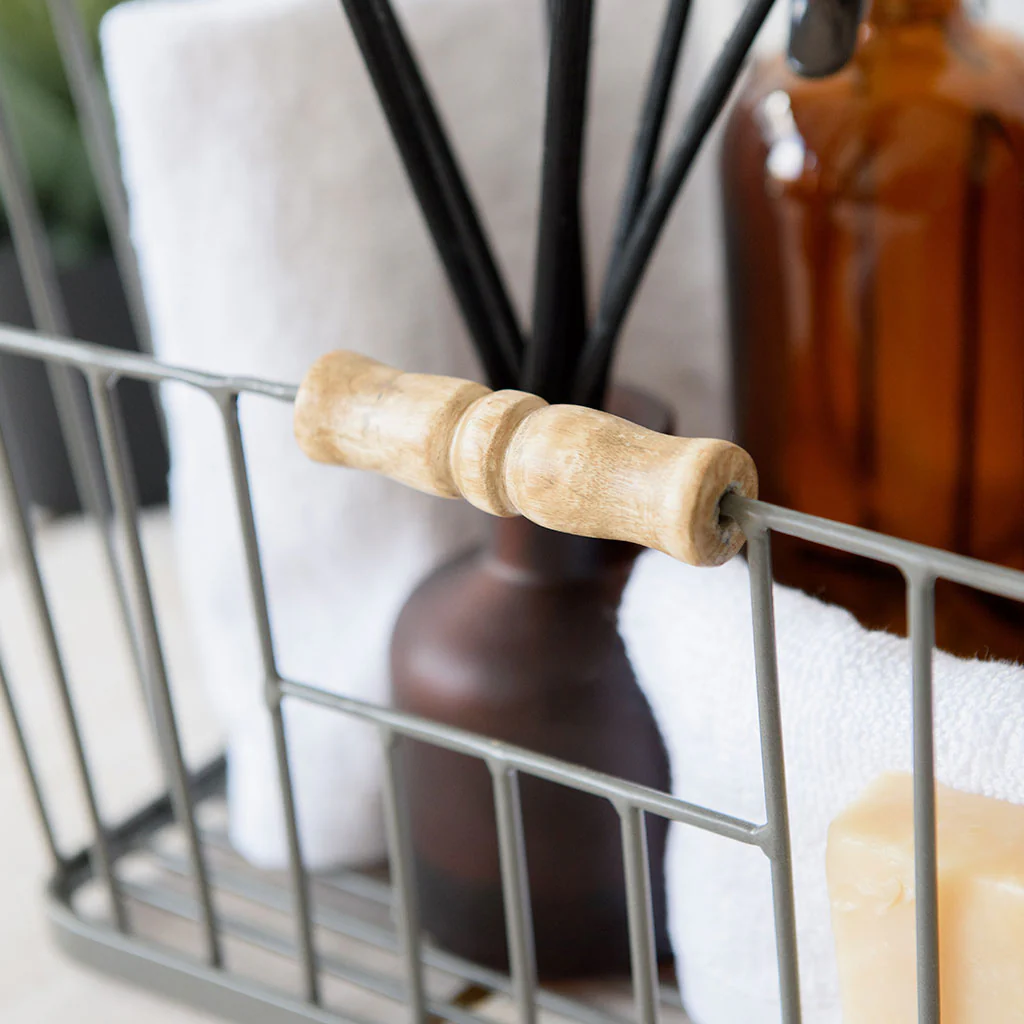El mango de madera le confiere un aire rústico. Sus líneas sencillas y su generosa capacidad, hacen de esta cesta metálica una canasta perfecta para el almacenaje en cualquier rincón de casa. La verás perfecta en la cocina, la despensa o el baño; incluso en una estantería de la habitación de los peques, con sus cuentos y muñecos favoritos.