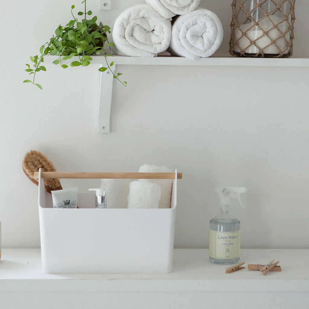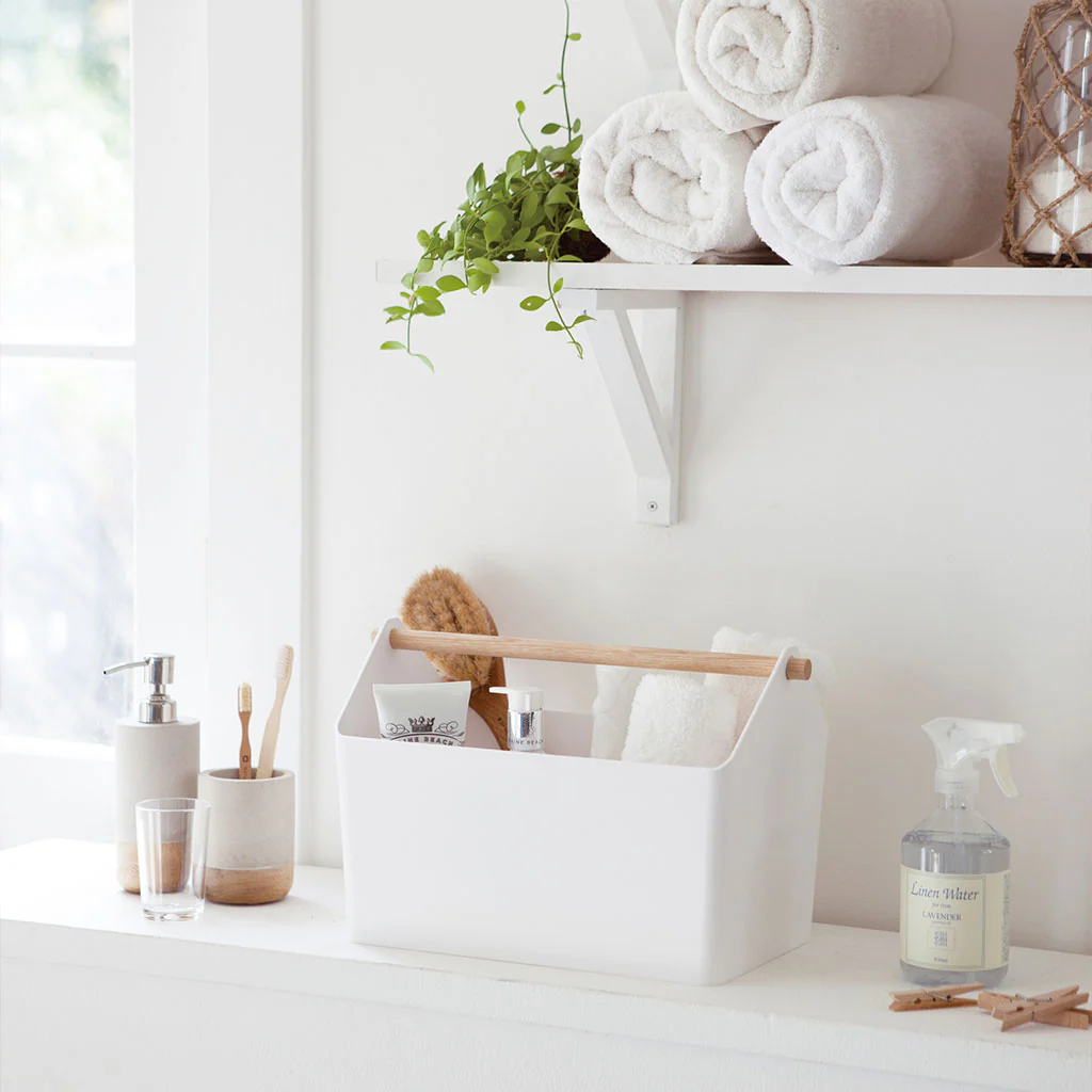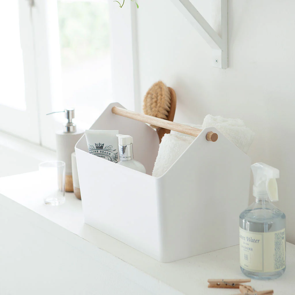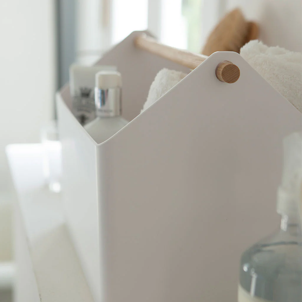 Esta caja no solo es práctica y cómoda, sino también muy bonita. Fabricada en polipropileno de color blanco combinado con un mango de madera, hace que sea fácil y cómoda de transportar de un lugar a otro y que quede preciosa allí dondequiera que la pongas. ¡Simplemente tendrás que llenarla y listo!