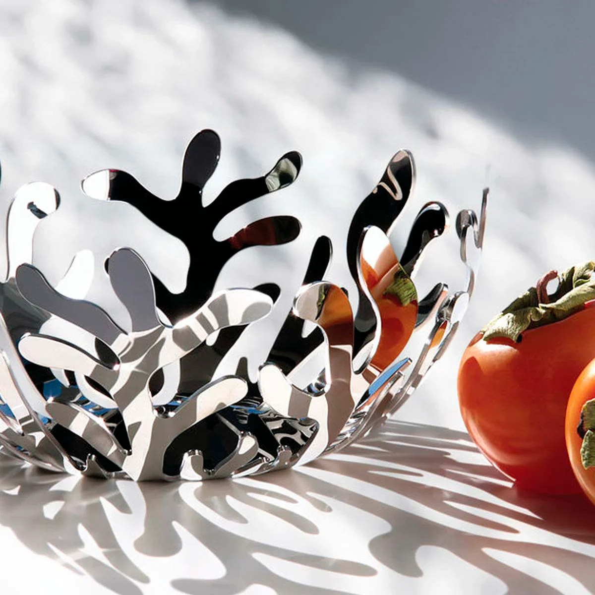 Este frutero de acero inoxidable Mediterraneo Alessi representa el coral que se extendía por las profundidades de este mar y desde aquí se exportaba por todo el mundo. Se cambiaba el coral por perfumes y joyas. Actualmente, el coral está muy protegido pero gracias a este diseño de Silvestris puedes tenerlo en casa en forma de frutero.