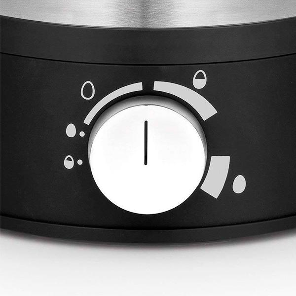 Está fabricado con base de acero inoxidable 18/10 Cromargan y tapa totalmente libre de BPA. Es apto para preparar hasta siete huevos a la vez de tamaño S a XL, y te permite cocinar los huevos de tres formas distintas: hacer huevo duro, huevo mollet o huevo pasado por agua.