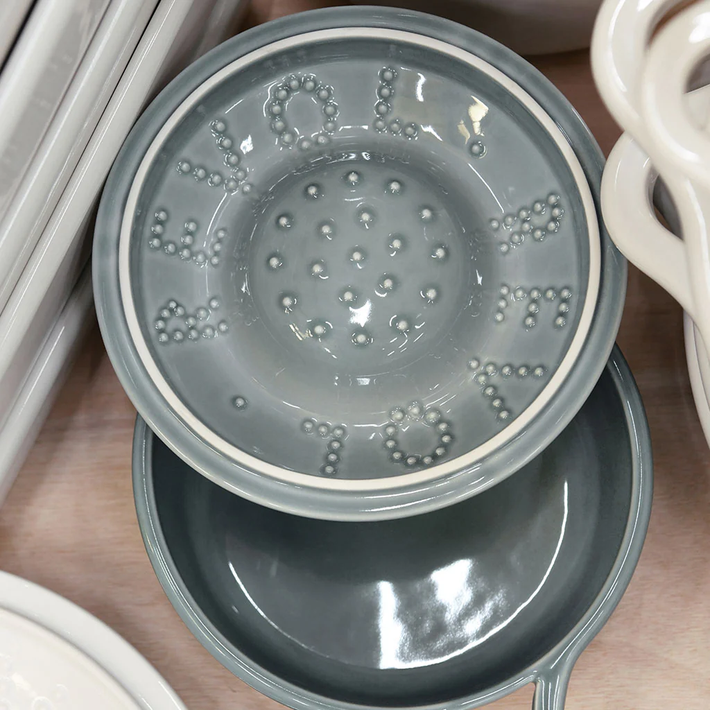 - Colores del esmaltado de la colección: blanco alabastro y gris nube.
