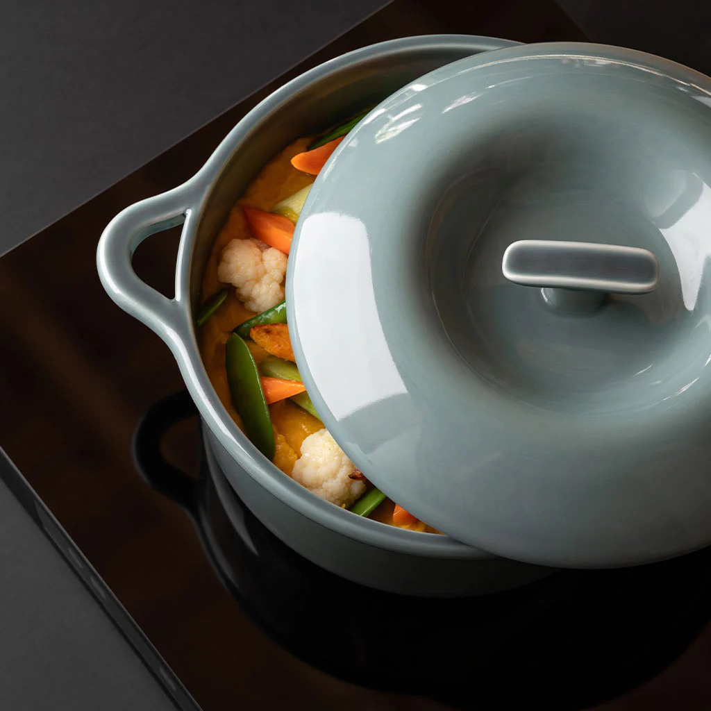 - El cuerpo de la cocotte cuenta con un ligero borde que integra de forma muy elegante las asas en una sola pieza.