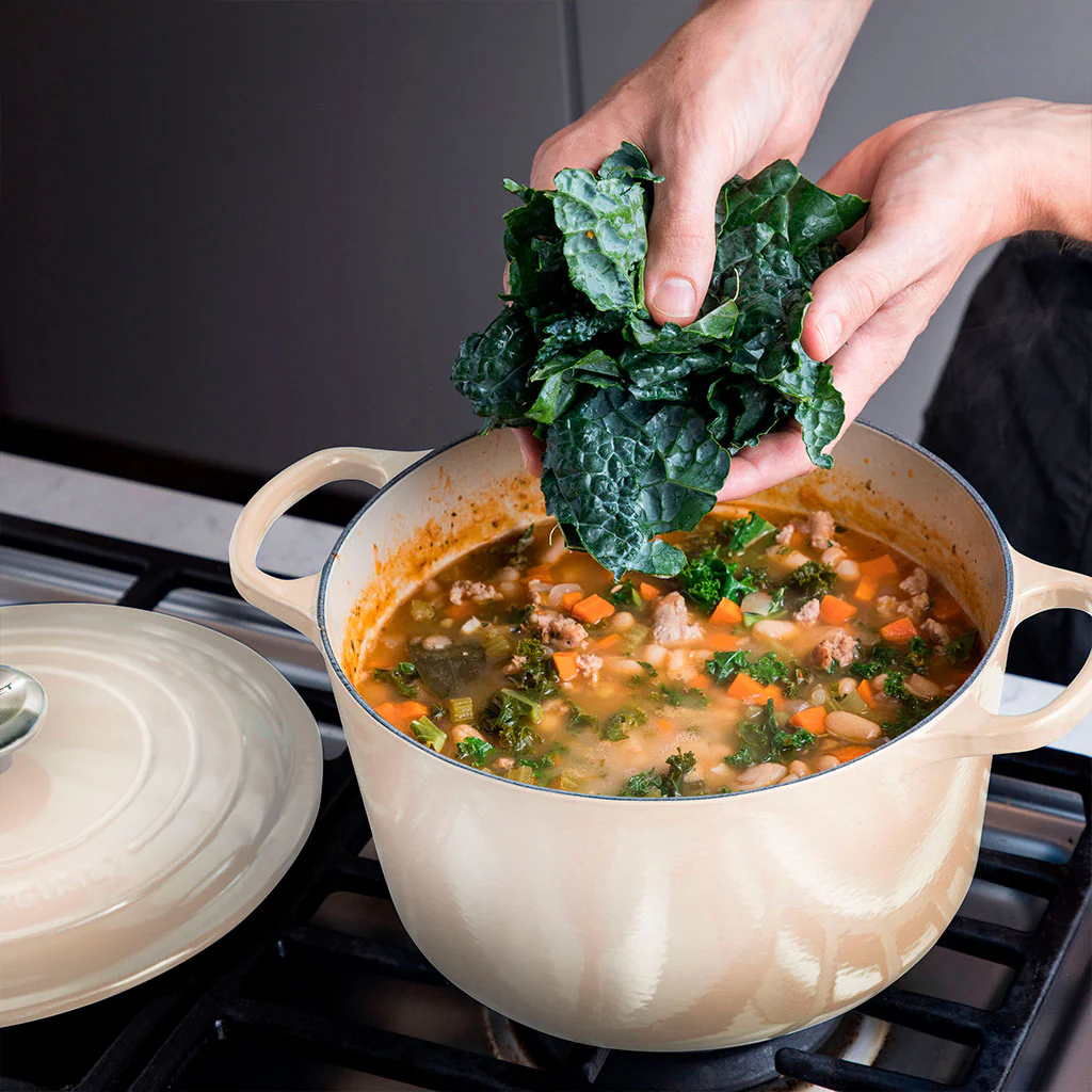 La cocotte redonda alta Evolution es un modelo de Le Creuset pensado para la cocción de cantidades más generosas, especialmente al hacer cremas, sopas, pasta y guisos en abundancia. El modelo de cocotte alto de Le Creuset se diferencia respecto al modelo de cocotte redondo tradicional por tener unos centímetros más de altura, lo que te permite cocinar más raciones, así como platos más caldosos o con más líquido, siendo también ideal para asados o para hornear pan sin problemas.
