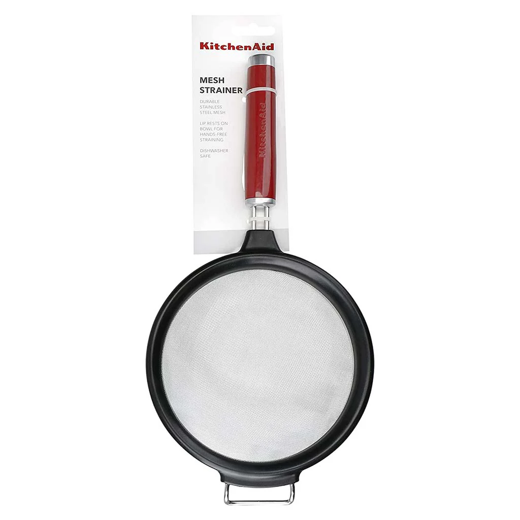 El Colador KitchenAid se va a convertir en un imprescindible en tu cocina. Este utensilio práctico y funcional cuenta con una malla fina de acero inoxidable, ideal tanto para colar líquidos sin residuos, como para tamizar harina o cacao sin grumos.