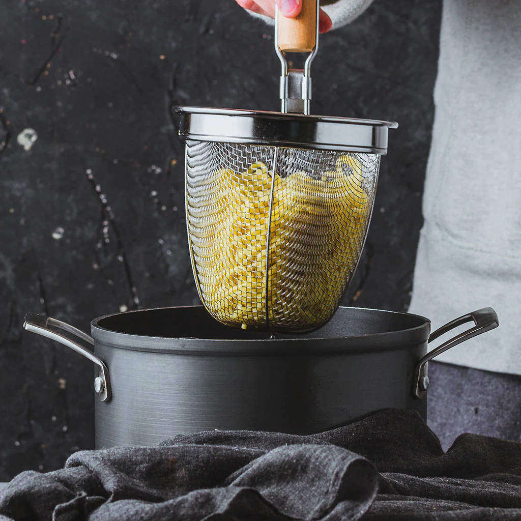 Perfecto para los fideos orientales, es ideal también para cocinar tu pasta favorita, para cocer y escaldar la verdura tal cual, con el colador sujeto a la olla o para freír los alimentos en tempura o con el empanado tradicional.