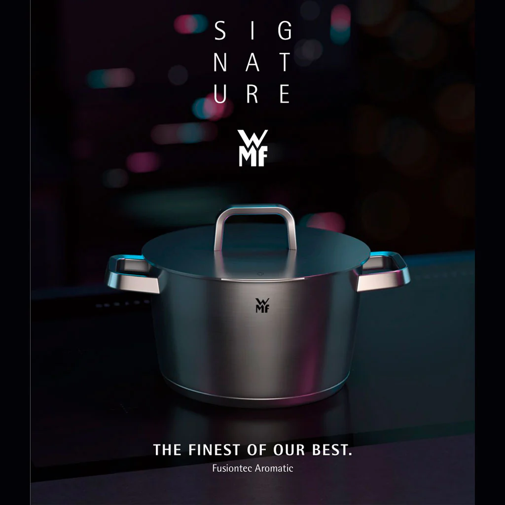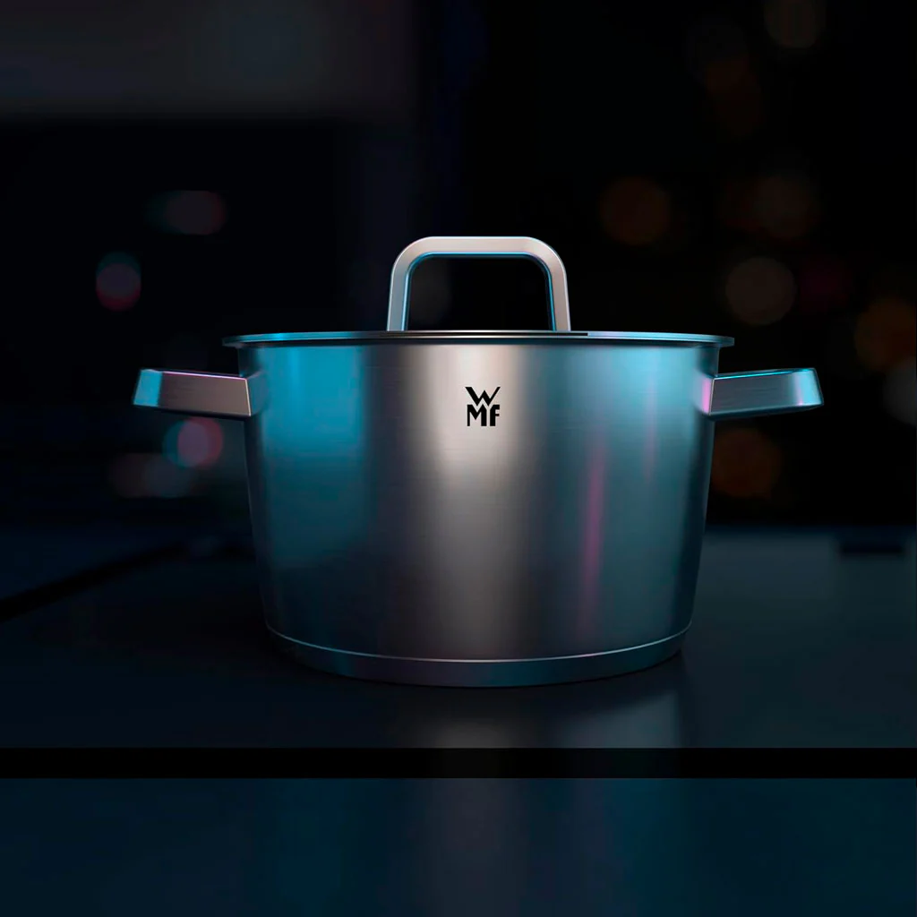 Descubre una batería de cocina premium, cuidadosamente elaborada a partir de Cromargan®: acero inoxidable 18/10 con un acabado mate que garantiza una durabilidad excepcional y una estética exquisita que resiste el paso del tiempo. Con el conjunto de ollas Iconic WMF obtendrás un rendimiento de alto nivel y la seguridad que caracteriza a WMF en la cocina