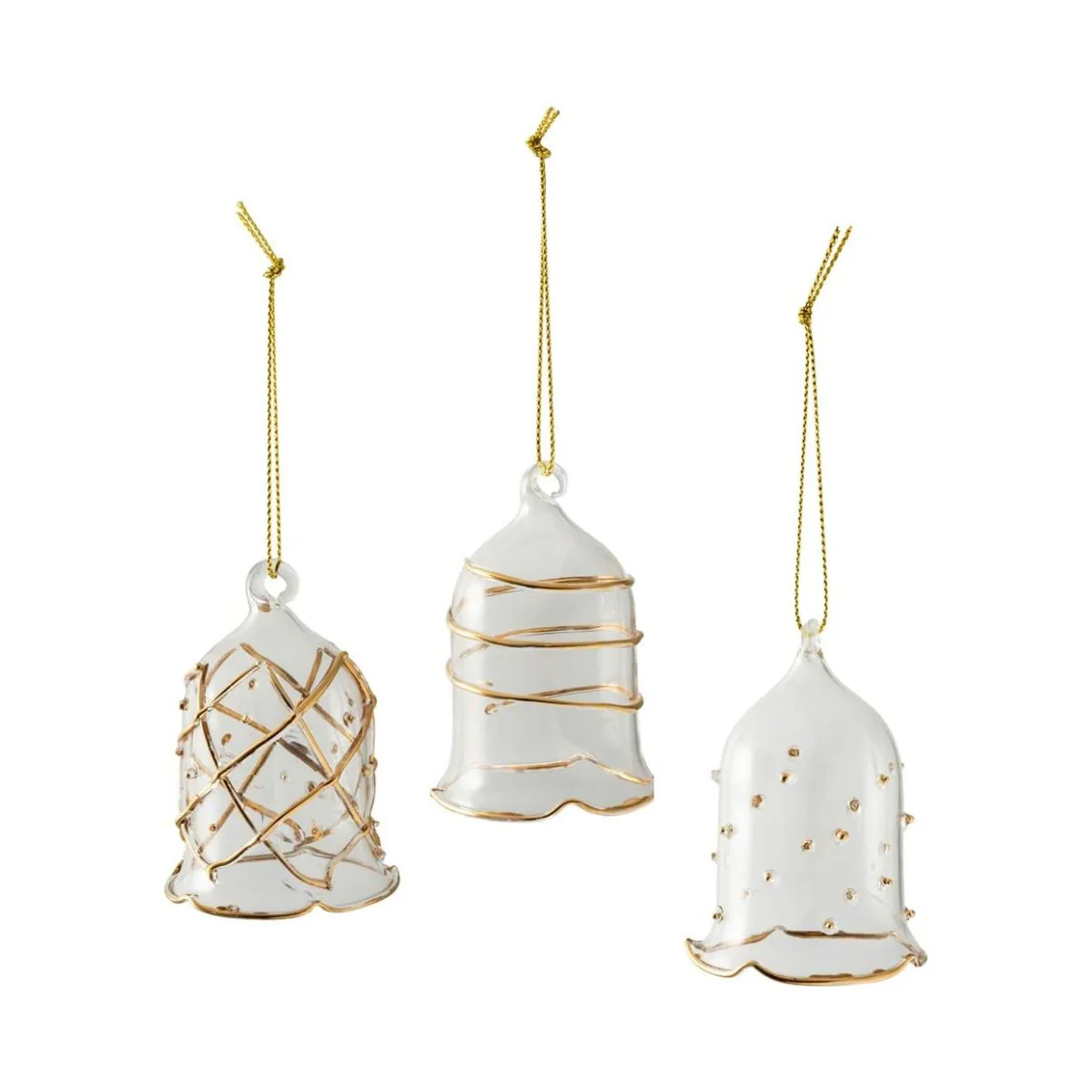Estas 3 campanas de vidrio forman el perfecto Conjunto de 3 adornos de cristal Winter Collage Villeroy & Boch. Son tan bonitas y elegantes, que decorarán cualquier rincón donde decidas ponerlas. Cada campana luce una decoración diferente con filigranas de color dorado y una fina cuerda del mismo color, para que puedas colgarlas en el árbol, en la ventana o donde tú prefieras. Un detalle precioso que evoca la Navidad y la magia de estas fiestas.