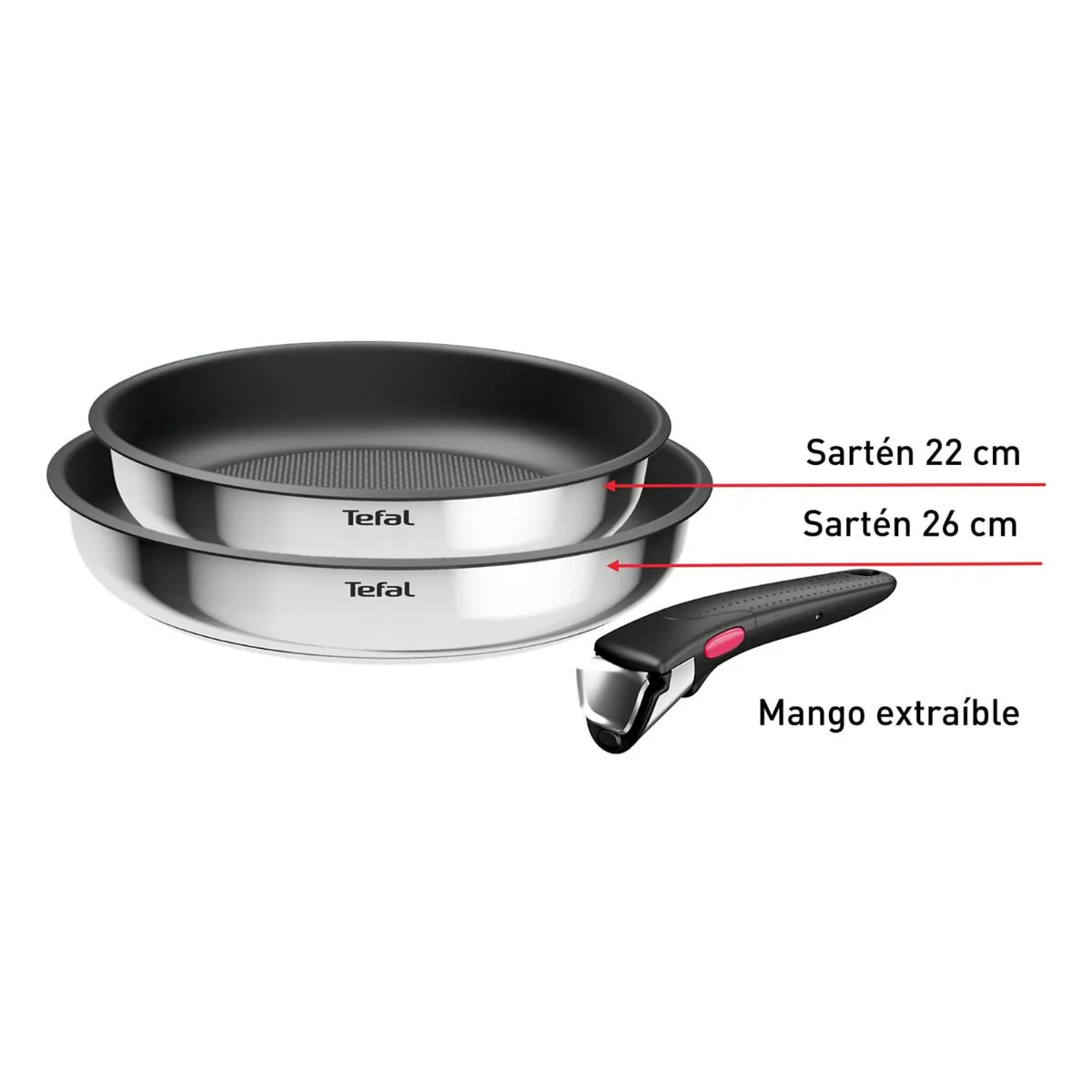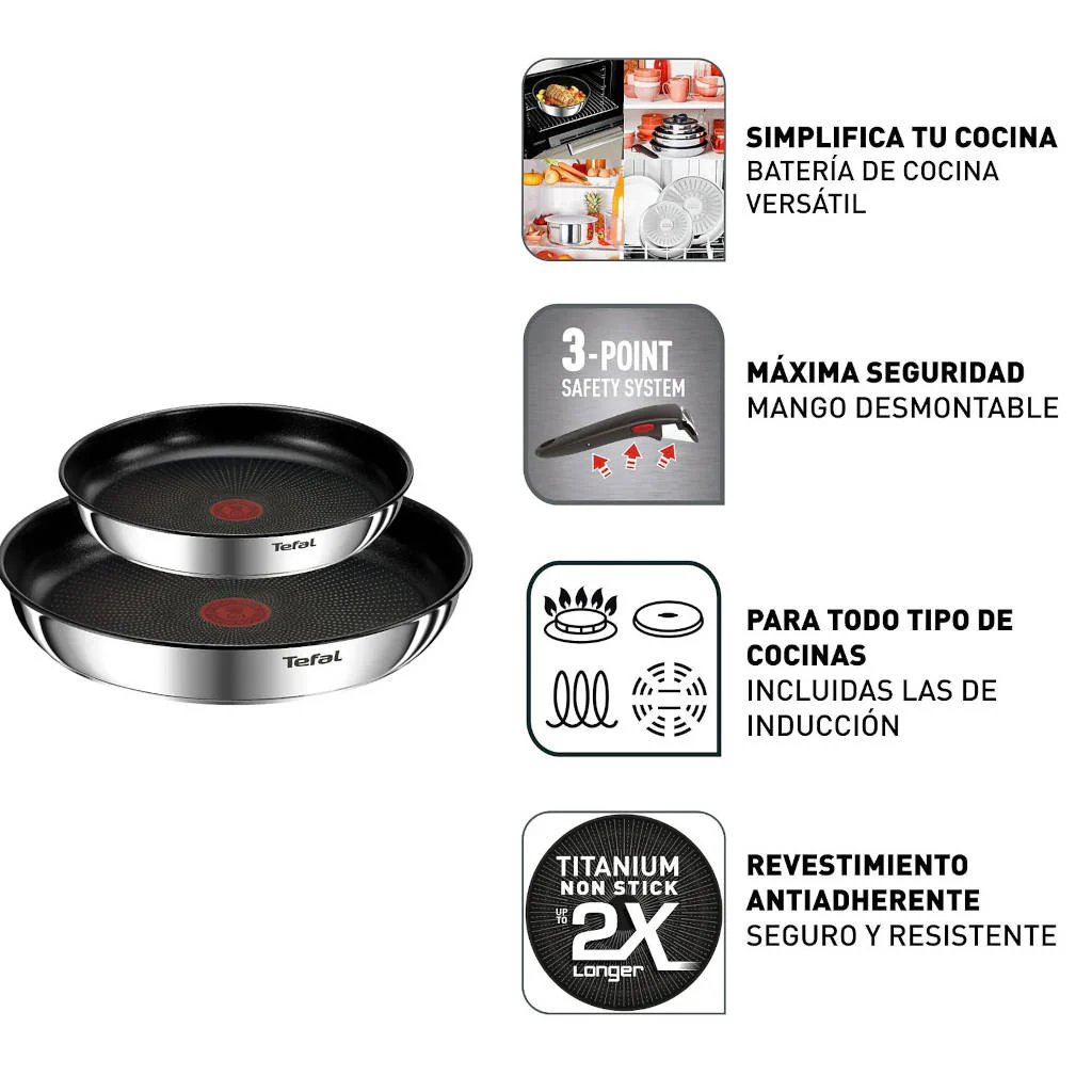 • Mango extraíble: Este set de sartenes Ingenio incluye un mango extraíble, que te permite: