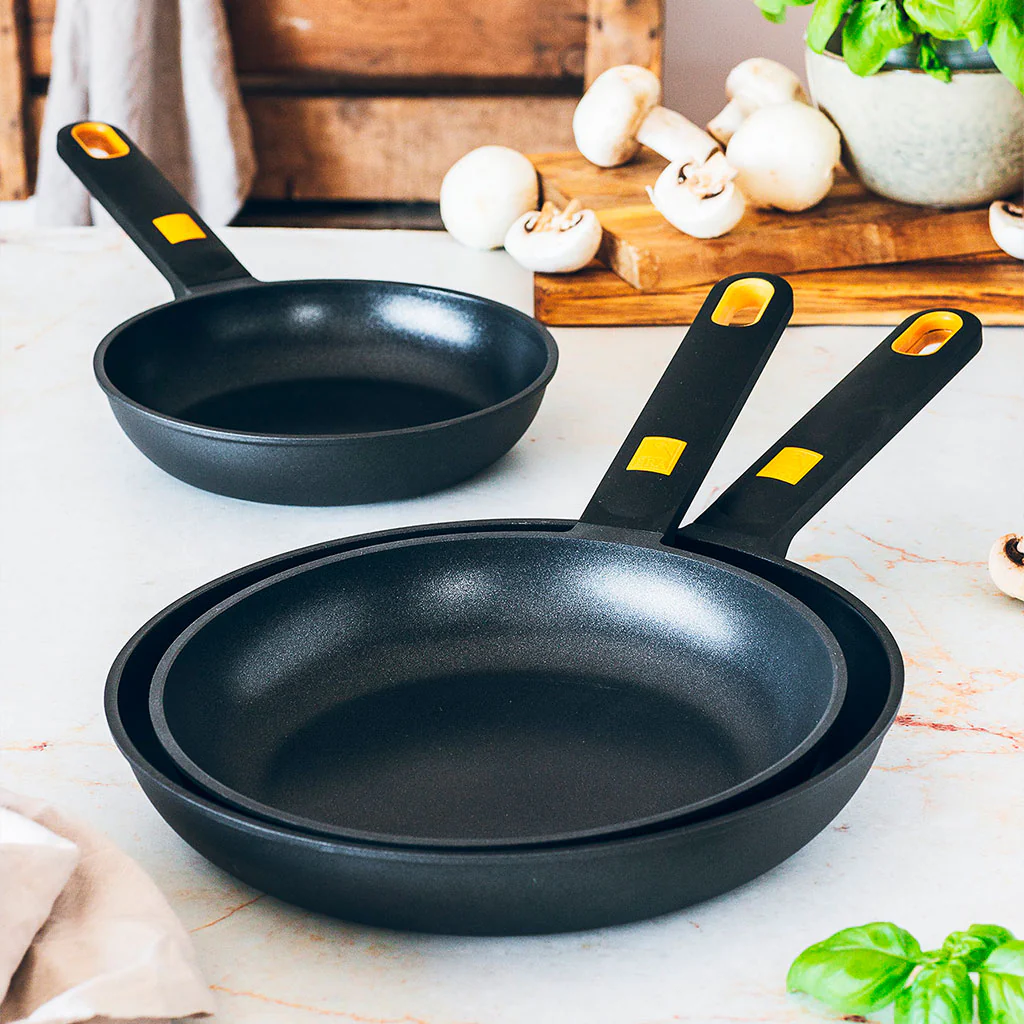 El Conjunto de 3 sartenes Daily Pro de Bra es un práctico set de tres sartenes antiadherentes, ideales para el día a día. Ligeras y muy cómodas de manejar, con ellas podrás cocinar de forma muy saludable, sin apenas aceite, y muy eficiente, gracias a su excelente reparto de la temperatura. ¡Un conjunto imprescindible!