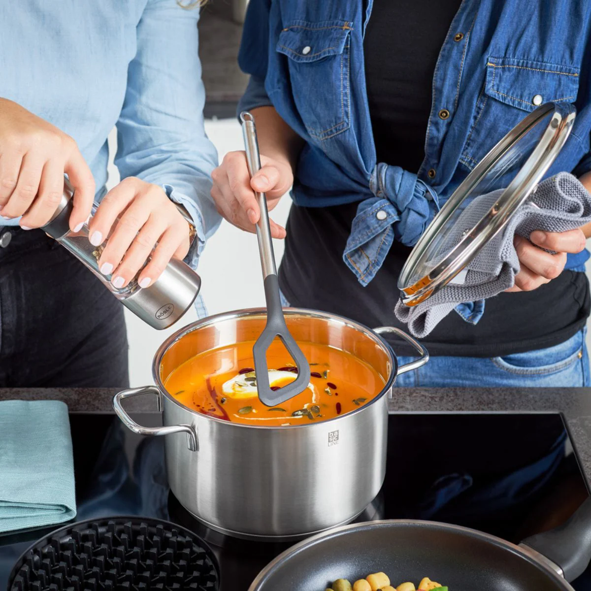 • Especialmente adecuados para su uso con utensilios antiadherentes y cerámicos: sartenes, cazos, ollas, cazuelas y boles.