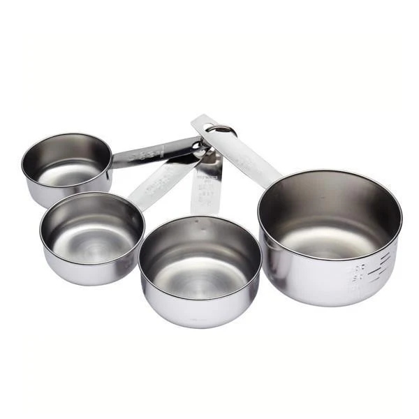 Conjunto de 4 medidores en forma de taza fabricados íntegramente de acero inoxidable pulido. Los medidores vienen con unas marcas externas muy claras, y con unas asas amplias para una correcta sujeción. Además, lleva un anillo de almacenamiento para mantener los 4 medidores juntos y siempre a la mano