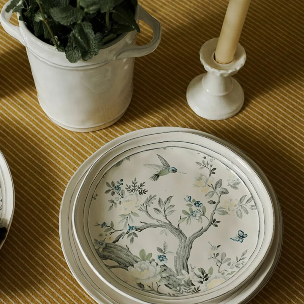 Laura Ashley integra los icónicos estampados Belvedere en las piezas de su Artisan Collection, una colección hecha a mano, de forma artesanal. Unos preciosos platos de porcelana con cocción esmaltada, de formas irregulares y base blanca con estampados de aves. Una línea muy especial en la que todas las piezas son únicas y exclusivas.