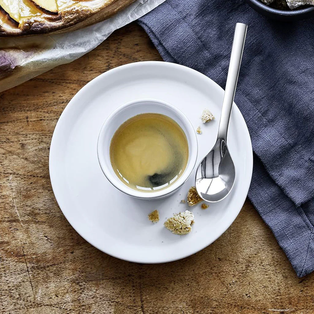 Las cucharas para espresso miden 11 cm de largo y son de acero inoxidable 18/10 Cromargan®, lo que les confiere una gran resistencia, incluso a los alimentos ácidos, y una gran durabilidad, así como un acabado muy bonito. Son aptas para el lavavajillas.