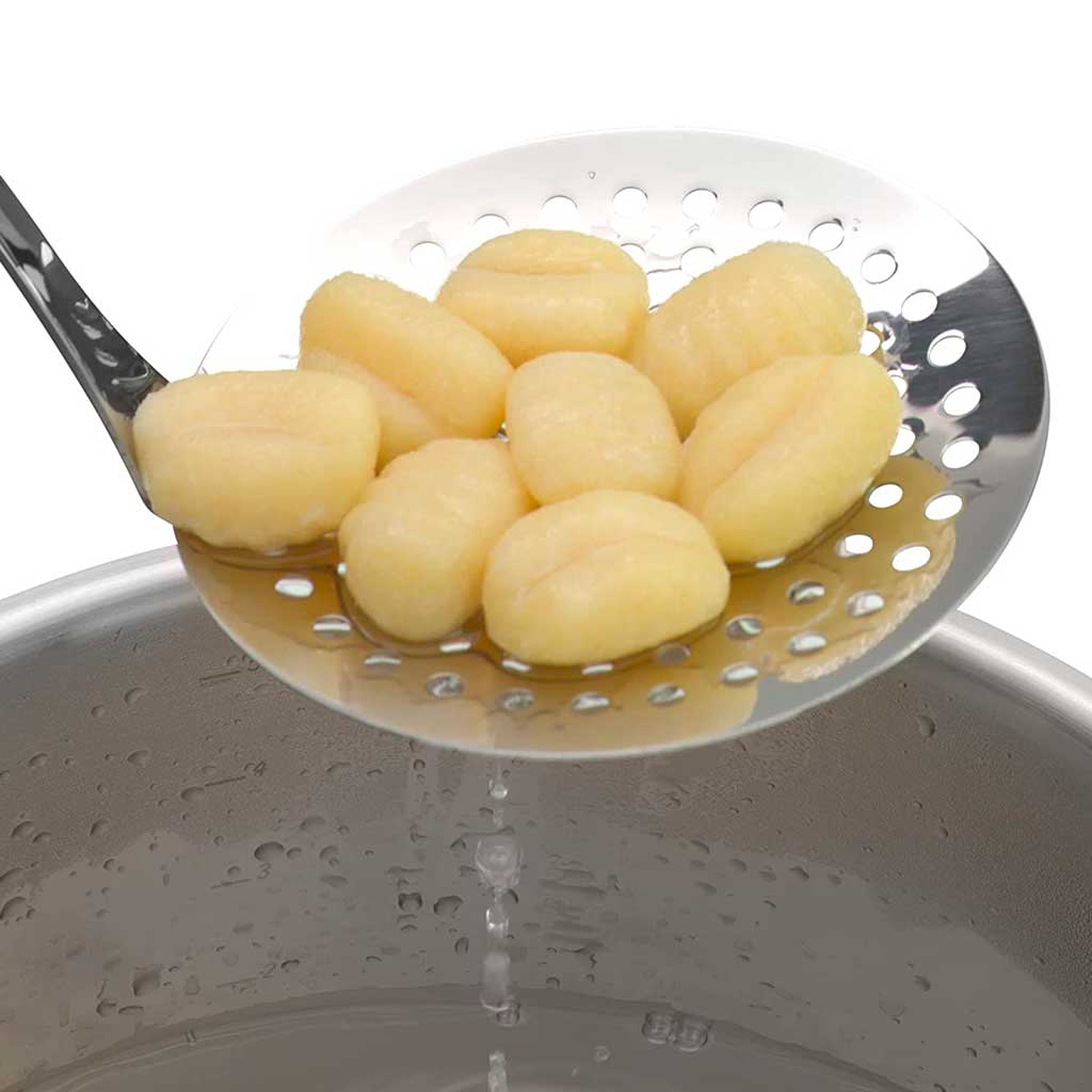 - Espumadera Profi Plus, ideal para retirar pasta hervida y gnocchis de la olla, y para escurrir todo tipo de frituras (cuando haces calamares, rabas, empanadillas, croquetas… sin dañar la fritura y eliminando el exceso de aceite).