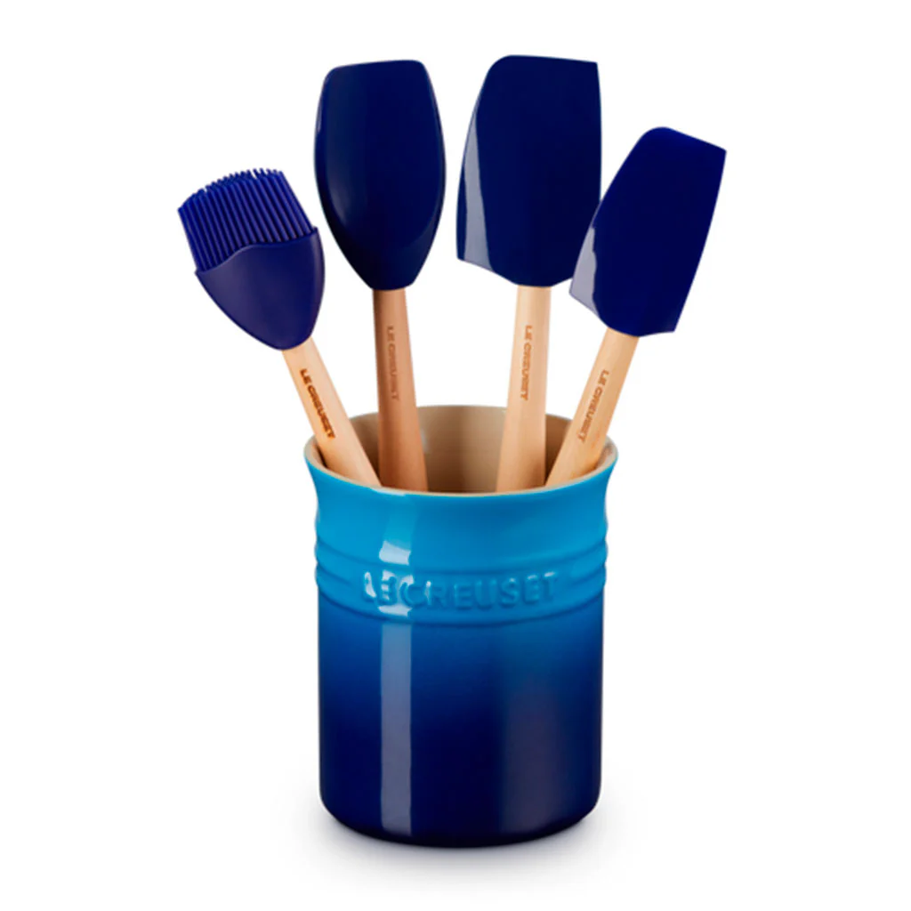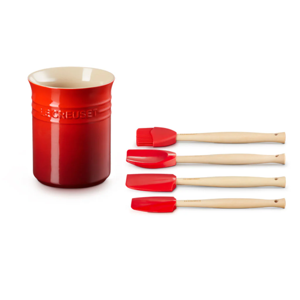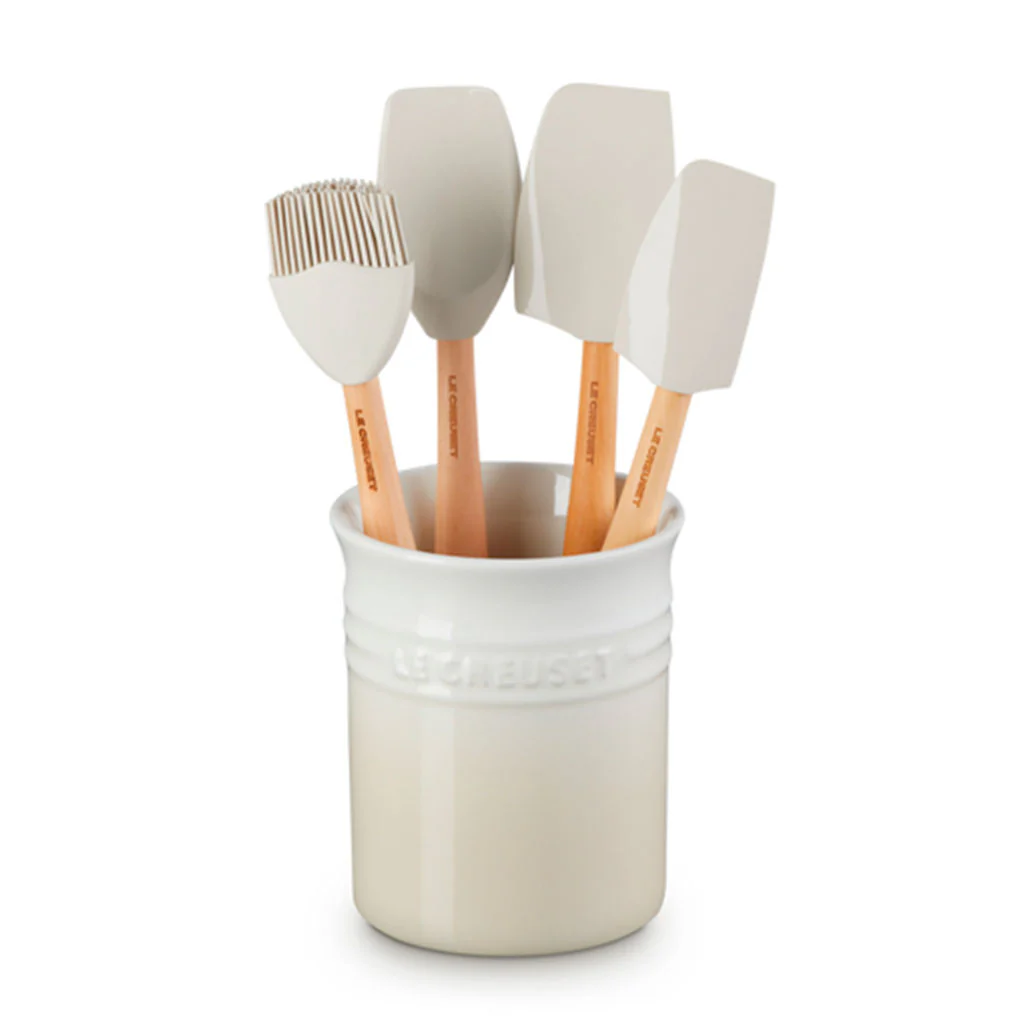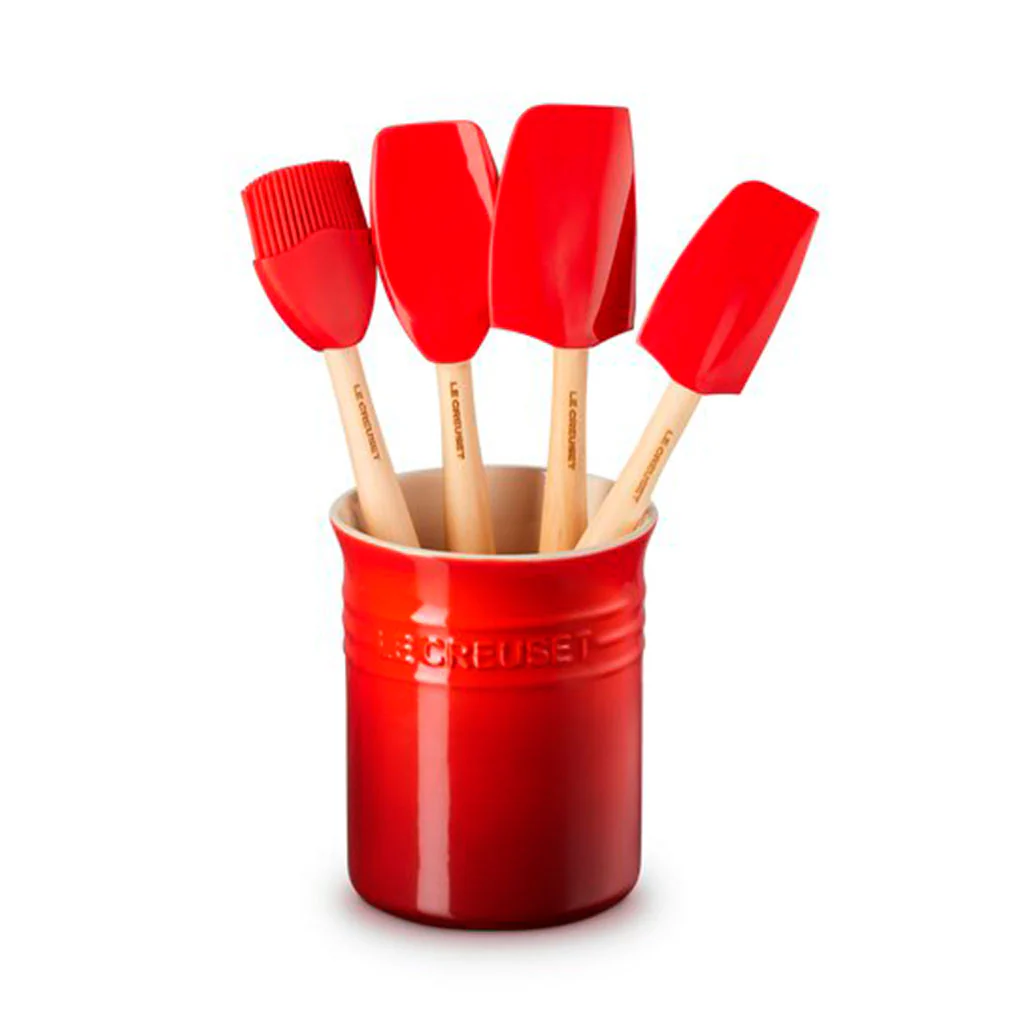 ¡Es el set perfecto para el día a día en tu cocina! Se trata de un set de 4 espátulas Craft Le Creuset y un bote para utensilios para poder guardarlas. ¡Verás cómo luce en tu cocina!