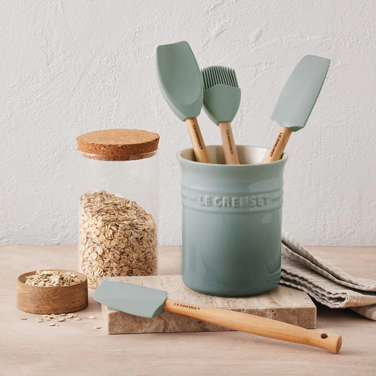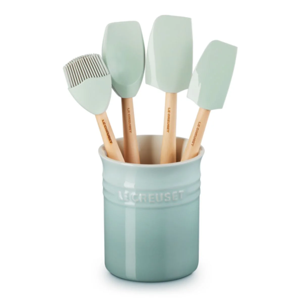 Conjunto de bote con 4 espátulas Le Creuset