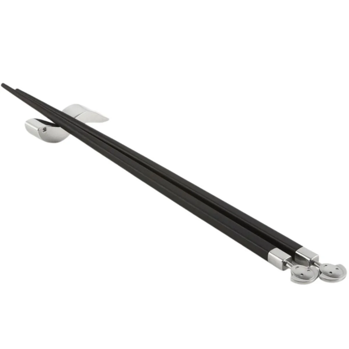 - Set de 2 palillos de ébano con soporte de acero inoxidable 18/10.