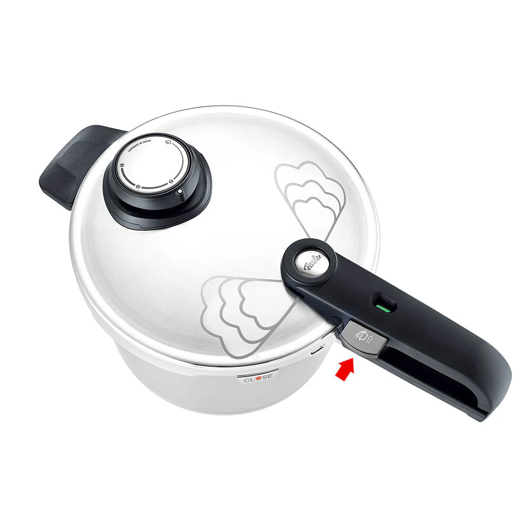 El Conjunto de olla a presión Vitavit® Premium Fissler ofrece funciones exclusivas que la hacen muy fácil de manejar y garantizan el máximo nivel de seguridad. Está fabricada en acero inoxidable 18/10 de alta calidad y con acabado satinado, lo que la hace muy duradera e impermeable a la oxidación. Su tapa es muy fácil de colocar gracias a la pestaña de metal que incorpora. Gracias al nuevo diseño del borde de la olla, cerrarla es la cosa más fácil del mundo. Tiene un cierre de seguridad, cuando la olla a presión se cierra correctamente se oye un clic y el indicador de colores del mango pasa del rojo al verde. Mientras eso no se cumpla, no se comienza a acumular presión.