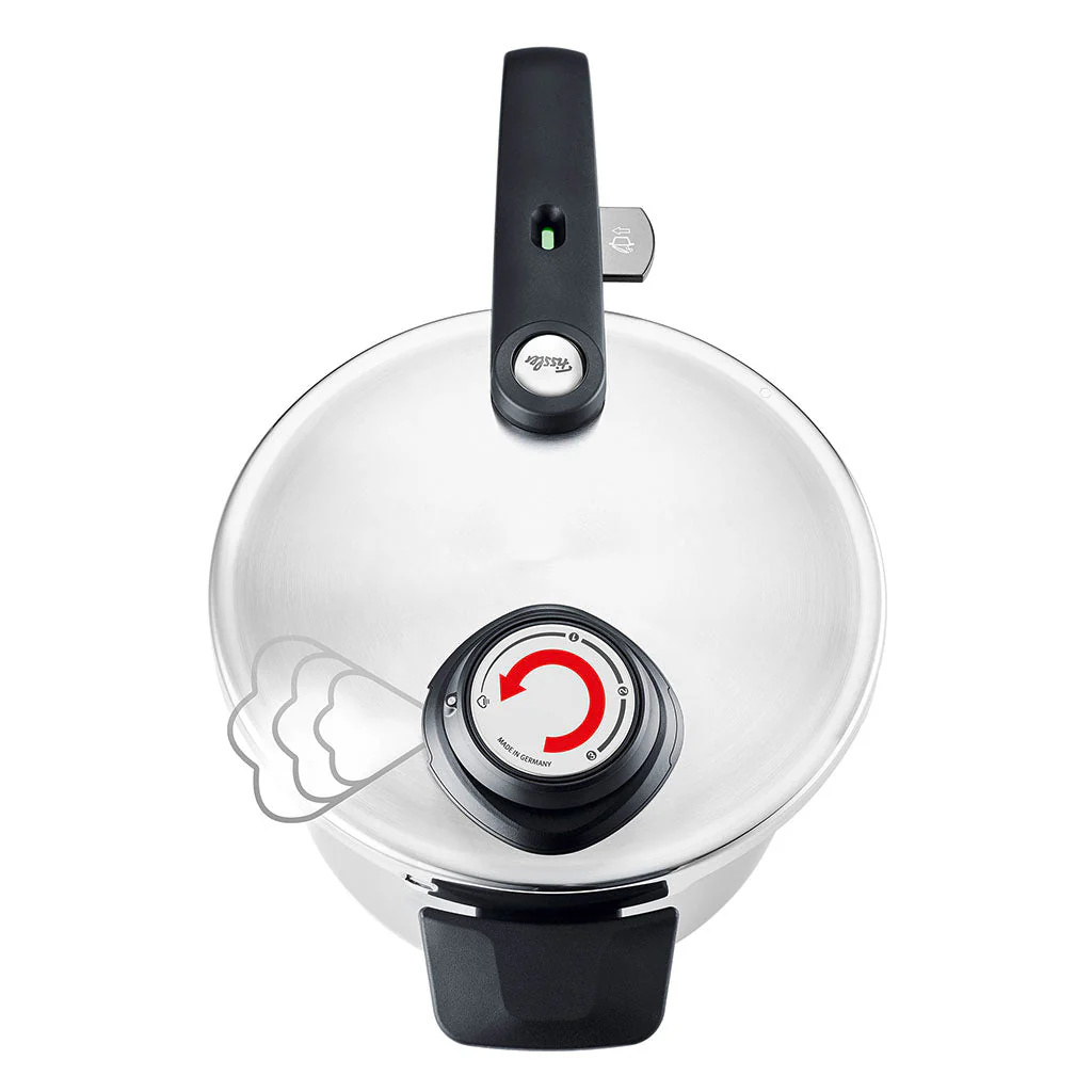 Dispone de cuatro ajustes para una cocción suave o rápida que ayudan a cocinar todo a la perfección y a conservar las vitaminas importantes. También dispone de una función de cocción al vapor sin presión, de modo que podrás echar un vistazo a los alimentos, removerlos y sazonarlos en cualquier momento. Con la válvula de cocción con sistema de semáforo tricolor, cocinar con la olla a presión es simple y seguro.