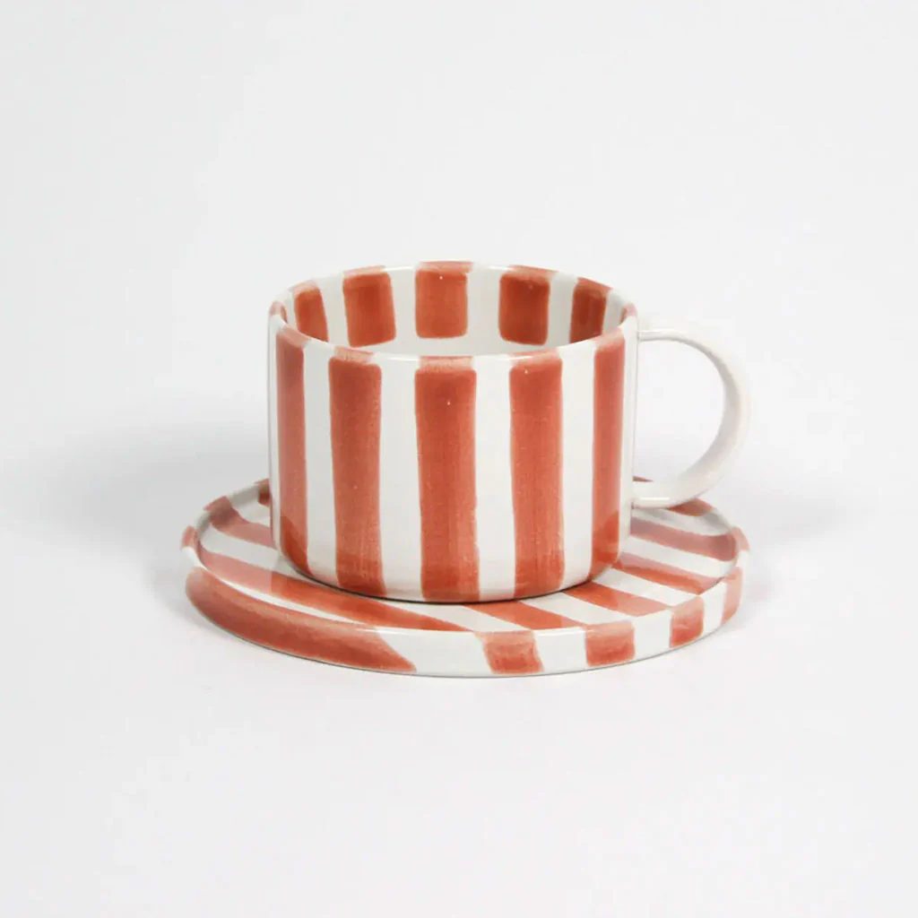 El encantador Conjunto de taza con plato Mónica de Olsson & Jensen es el compañero perfecto para disfrutar de una deliciosa taza de té, café o de un reconfortante chocolate caliente. Su diseño a rayas de color rojo le confiere un aspecto desenfadado y alegre. Un set con mucho estilo, perfecto para regalar y, ¡para regalártelo!
