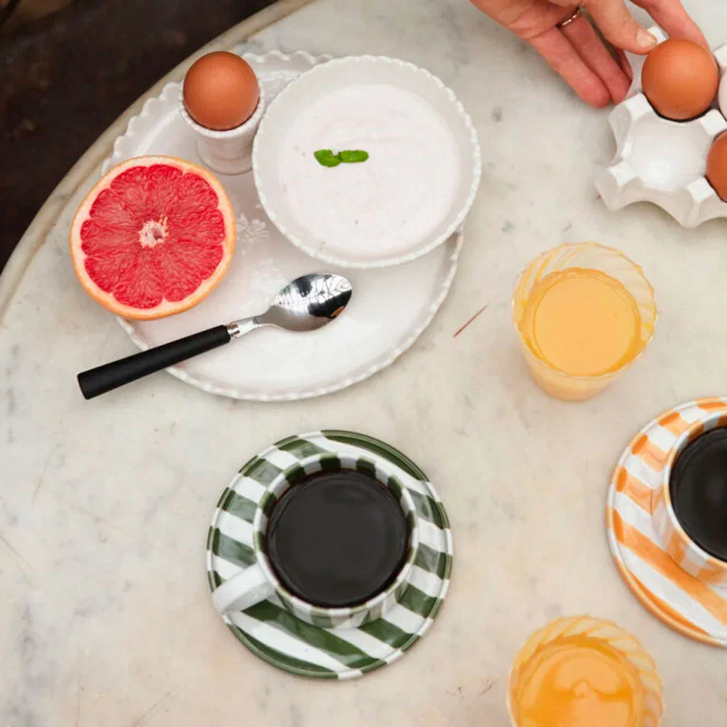 Este set es perfecto tanto para usarlo junto en tus desayunos, meriendas o en cualquier momento del día, como para presentarlo por separado, usando la taza para servir unos palitos de pan, unas crudités de verduras o cualquier salsa de acompañamiento y el plato como encantadora bandeja para los aperitivos antes de comer, o los bombones o galletas a la hora del café.