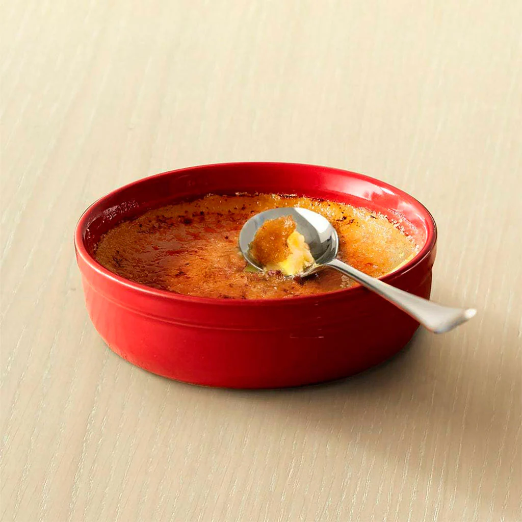 El Conjunto de dos recipientes para crème brûlée Emile Henry es un set de 2 ramequines cerámicos diseñados para cocinar y servir cremas dulces como la tradicional crème brûlée o la deliciosa crema catalana, y también para hornear las versiones saladas más exquisitas, como una crema de queso de cabra gratinada con miel. Con sus 12 cm de diámetro y sus 3,5 cm de alto, estos dos platillos cerámicos son muy versátiles y perfectos para presentar salsas, postres y aperitivos en tu mesa.