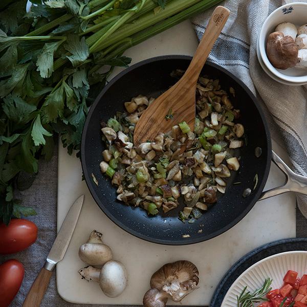 - Incorporan una superficie antiadherente reforzada (sin PFOA) que evitará que los alimentos se peguen incluso usando muy poco aceite.