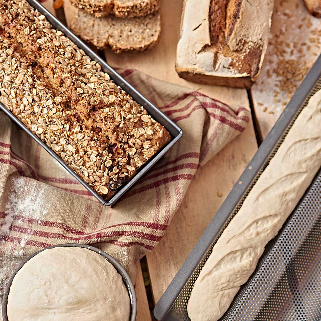 Los moldes perforados son perfectos para la cocción de las masas de pan: a diferencia de otras masas (como pueden ser los bizcochos), el pan agradece un choque intenso y rápido con el aire caliente. Aquí es donde los agujeros tienen su función: permiten que el aire caliente del horno penetre rápidamente en la masa, consiguiendo una cocción rápida y perfecta, y consiguiendo una corteza crujiente y miga esponjosa.