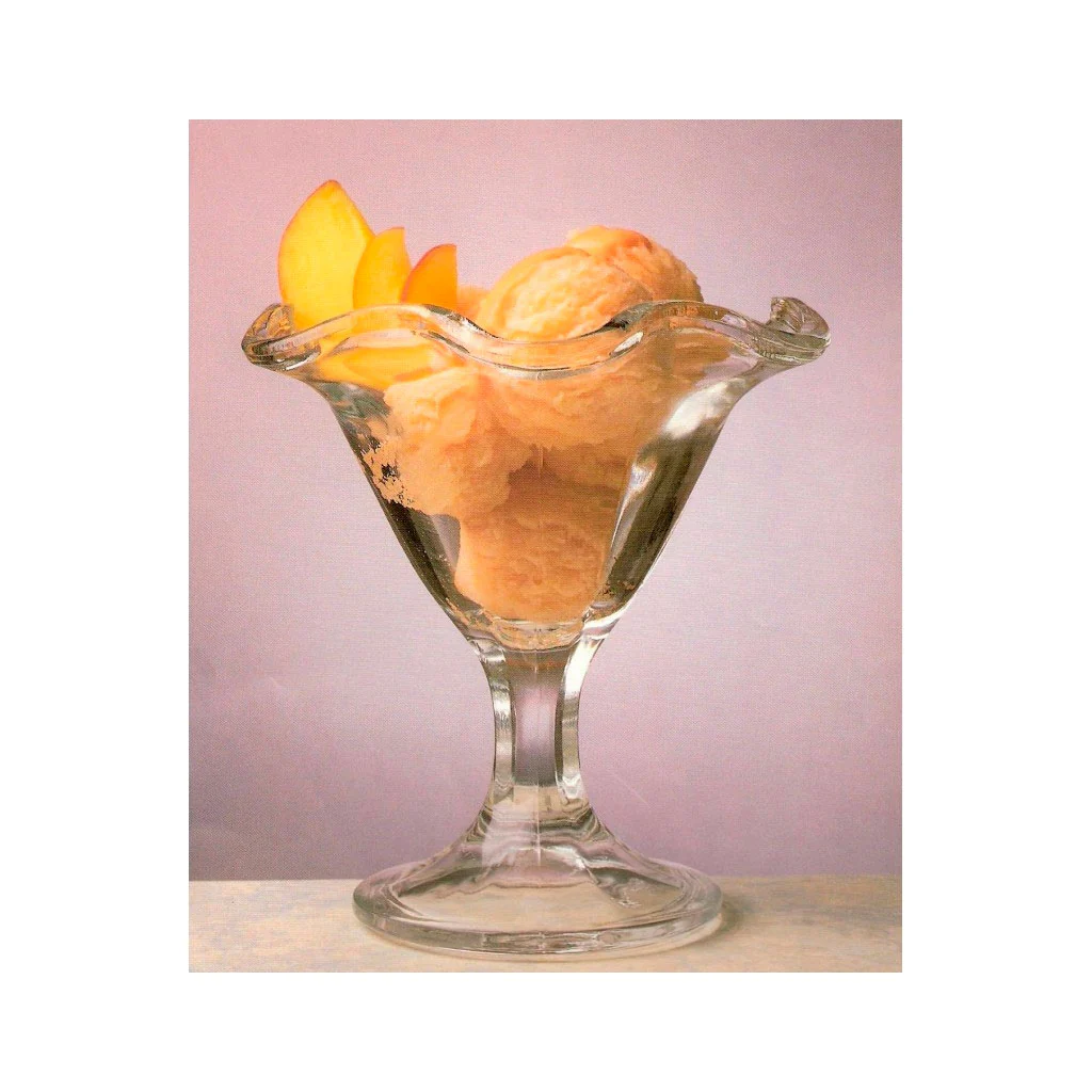 Frutas en almíbar y macedonia: Llena las copas con frutas en almíbar, como peras o duraznos, y sírvelas con una cucharada de crema batida.