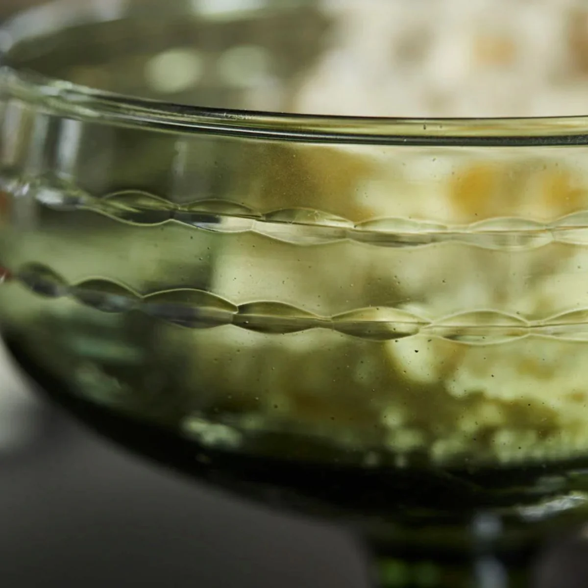 La Copa para postres y helados Vintage House Doctor dará a tus postres una presentación de lo más elegante. Estas copas de cristal soplado de forma artesanal, lo tienen todo para convertirse en las piezas más esperadas en tu mesa. En un bonito color verde, destacan sus detalles grabados a mano, en forma de sutiles cadenetas que recorren todo el cáliz. Ideales para postres, helados y cremas, tu ensaladilla o tu mejor cóctel de gambas lucirá tan delicioso como glamuroso.