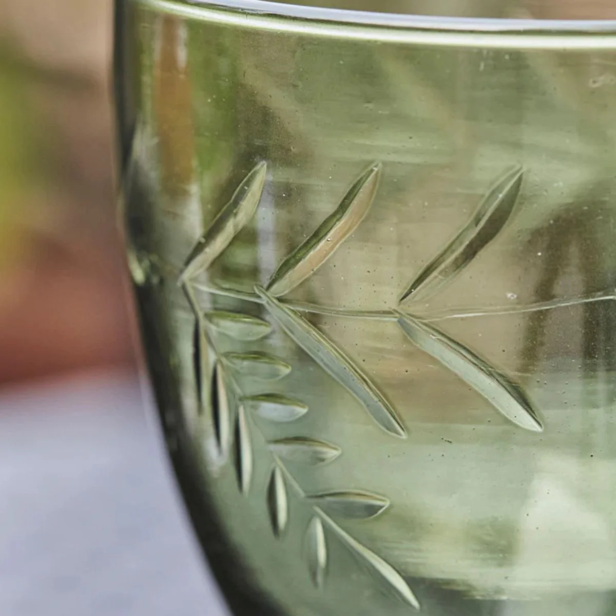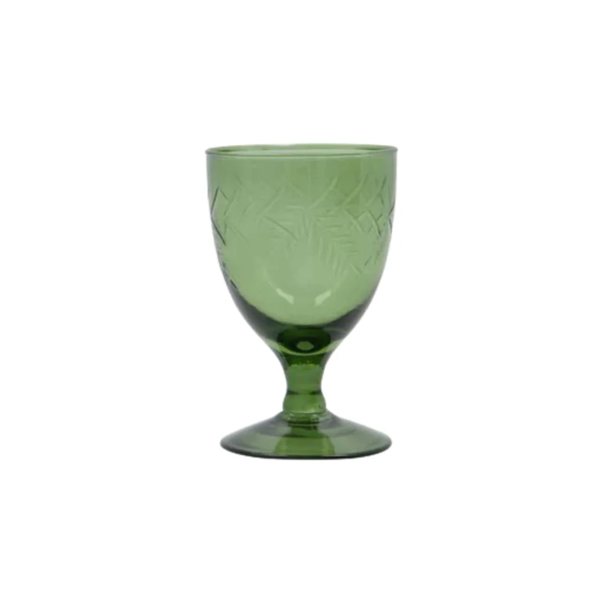 Fíjate en todos los detalles de la Copa para vino Vintage House Doctor. Esta copa de cristal soplado de color verde, está hecha a mano y presenta un encantador grabado de hojas, evocando a la naturaleza. Es una pieza preciosa en la que servir el vino, el agua, o la bebida que prefieras, porque es tan bonita que la usarás en toda ocasión. Su tallo corto y su amplio pie le confieren un aire clásico, haciéndola ideal para combinar con tu vajilla, sea cual sea su estilo.