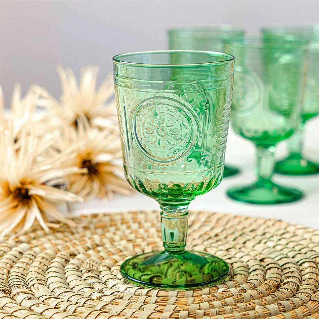 El bonito diseño y los grabados de su cáliz, así como su robusto tallo y su ancho pie, les dan un aspecto sobrio y encantador. Coloreadas externamente con tecnología de lacado especial y colores orgánicos y respetuosos con el medio ambiente, son aptas para el contacto con bebidas y alimentos, y llenarán de encanto tu mesa de diario con su aire romántico y sus tonos, que invitan a sentir la primavera a cada sorbo.,
