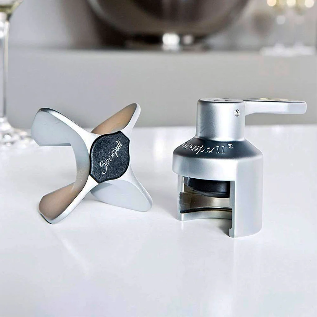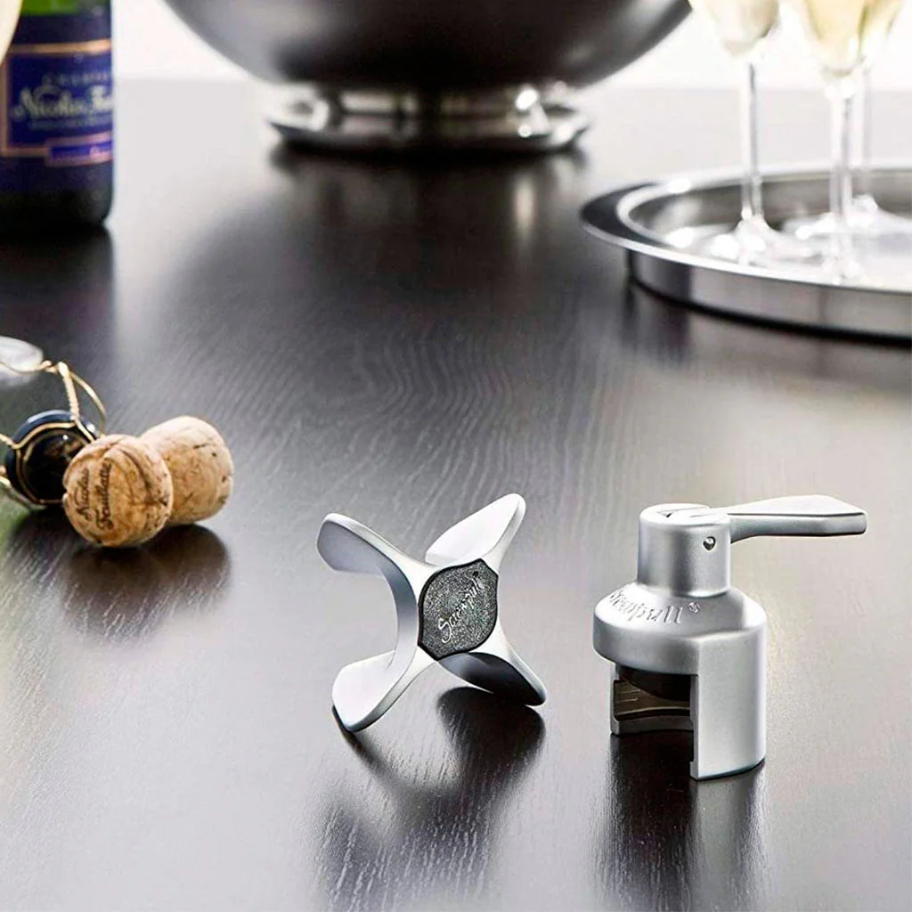 Su sistema de palanca es de lo más fácil. Tan solo has de colocar el tapón en la botella y presionar la palanca. De esta forma, no se escapará el gas, ¡ni una burbuja!, de tu vino espumoso o de aguja. Cuando te apetezca servirte una copa, tan solo has de levantar la palanca y retirar el tapón.