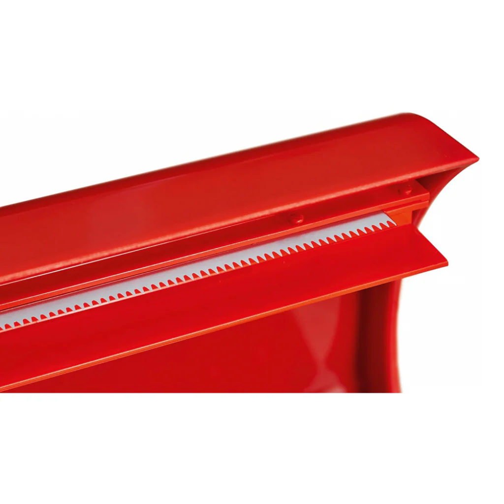 Su base cuenta con pies antideslizantes, para que puedas estirar el papel y cortarlo con seguridad a la medida elegida. Dispone de ventana para que puedas ver el contenido y es tan fácil de usar que levantando la tapa y colocando el rollo, ¡ya la tendrás lista para empezar! Estira el papel elegido hasta la medida que quieras, baja la tapa del cortador para cortar limpiamente y sin dificultad gracias a su cuchilla de sierra.