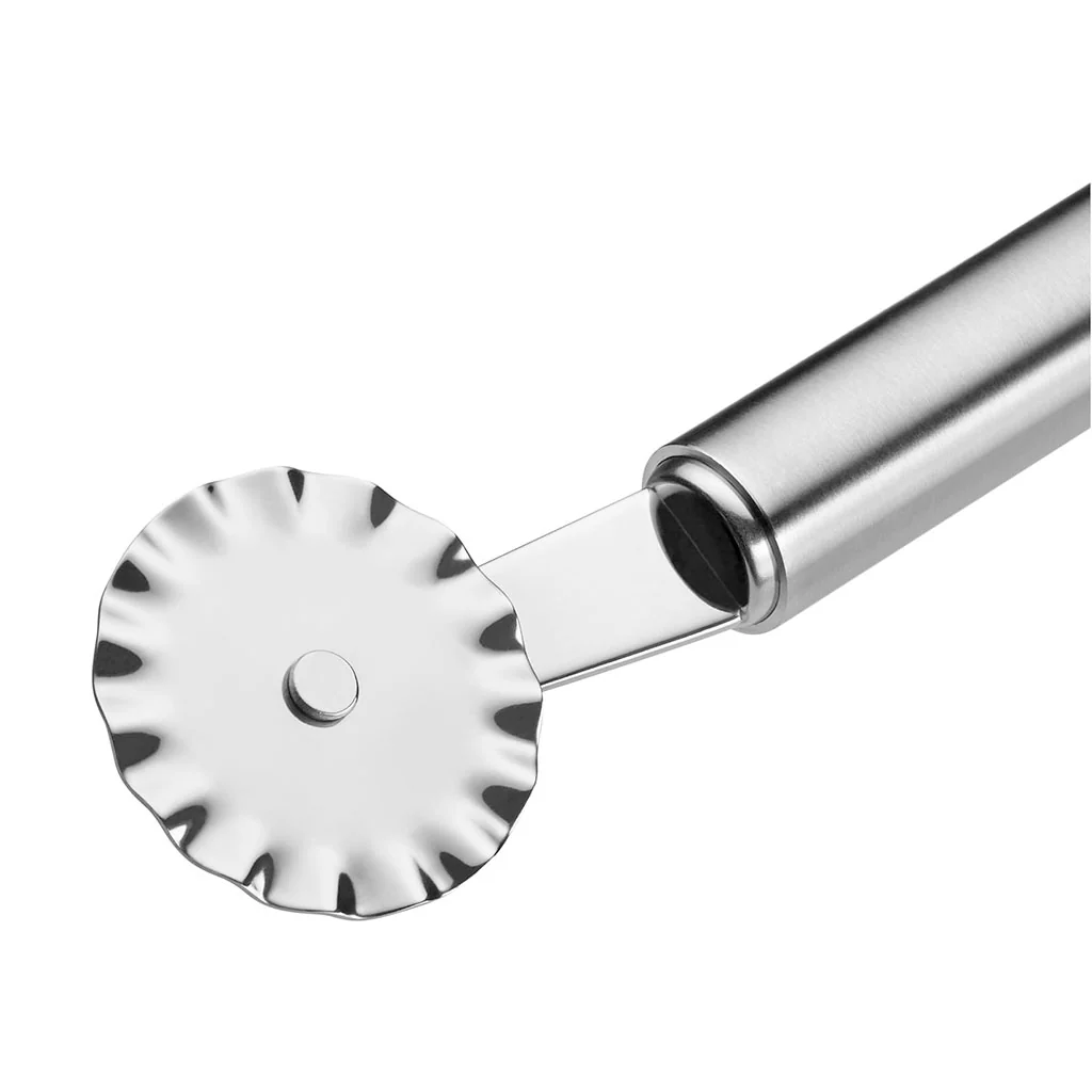 Con el Cortador para pasta y masas Profi Plus WMF, dar forma al hojaldre, o cortar unos espaguetis, será de lo más sencillo. El cortador está fabricado íntegramente en acero inoxidable 18/10 Cromargan® de excelente calidad, y es muy fácil de usar. Gracias a la afilada cuchilla de este cortador de rueda, con tan solo deslizarlo sobre la masa estirada, podrás cortarla a tu gusto y sin esfuerzo. Desde hojaldre a masa quebrada, pasta filo, de galletas o la masa de tu pasta fresca casera, te facilitará el trabajo y tendrás unos resultados estupendos.