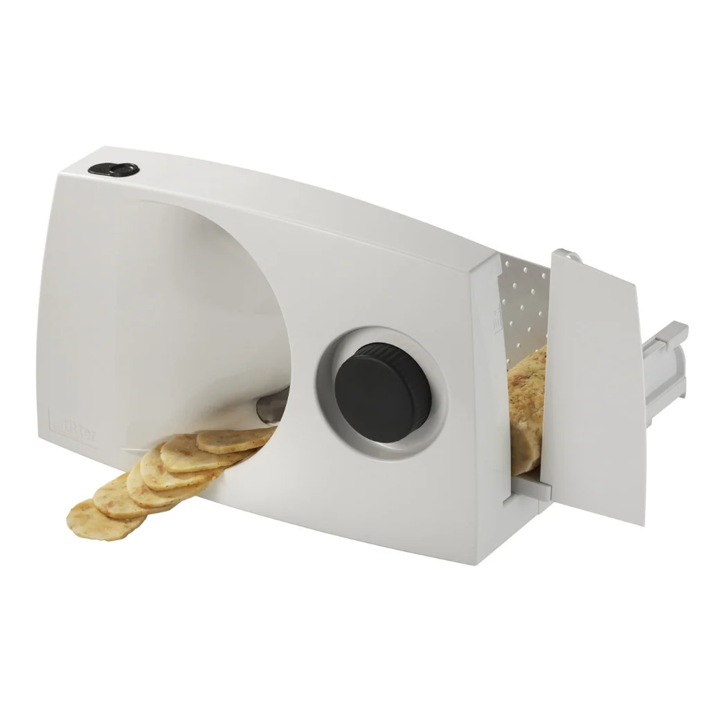 • Plegada ocupa tan solo 10 cm, convirtiéndose en un cortafiambres compacto, muy fácil de guardar y apto para cualquier cocina.