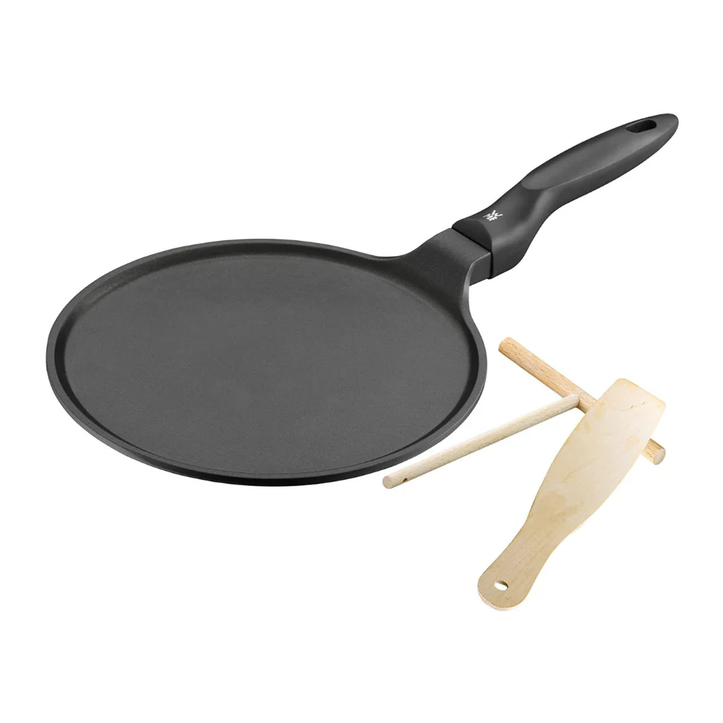 La Crepera antiadherente de WMF Permadur es un ayudante de lo más completo. Con este estupendo set podrás preparar unos deliciosos crêpes de forma fácil y práctica, sin tener que preocuparte por si se pegan. El conjunto incluye, además de la sartén para tus crepes y tortitas, un rastrillo de madera para extender la masa y una pala de madera para dar la vuelta al crepe cómodamente.