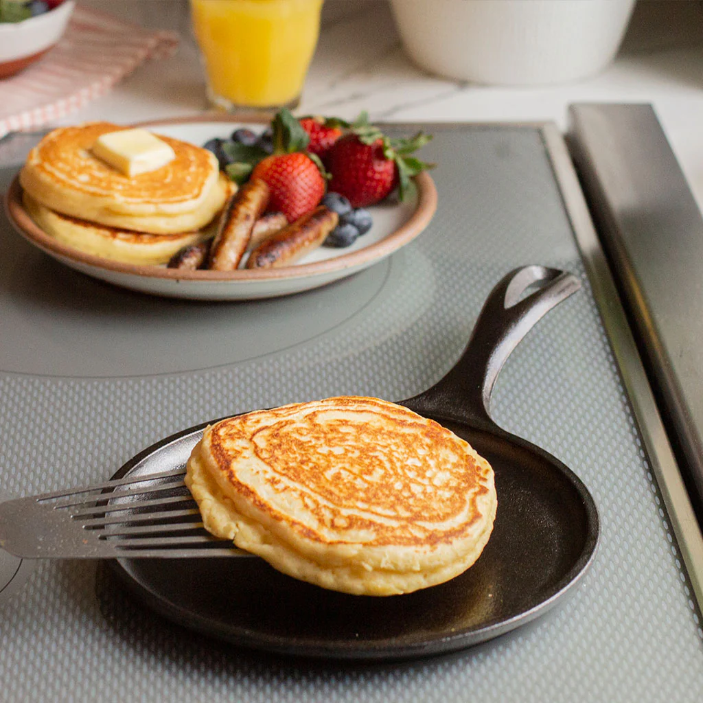 Recuerda que la crepera es de hierro y está fabricada en una sola pieza, por lo que el mango se calienta. Con el protector de silicona para el mango caliente Lodge podrás manejar la crepera de hierro de forma segura y sin quemarte.
