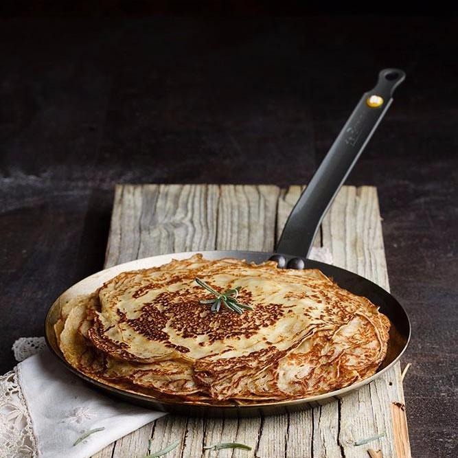 Más francesa que Yves Saint-Laurent, la crepera Mineral B De Buyer es fantástica para cocinar suculentas crêpes en casa, y un utensilio genial para usar también de parrilla o para asar carne (gracias a sus laterales bajos y a su material, que sella las carnes rapidísimamente). Una joya entre las sartenes de hierro Mineral B de De Buyer.