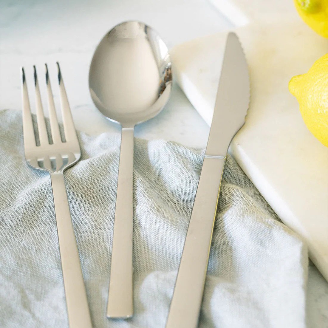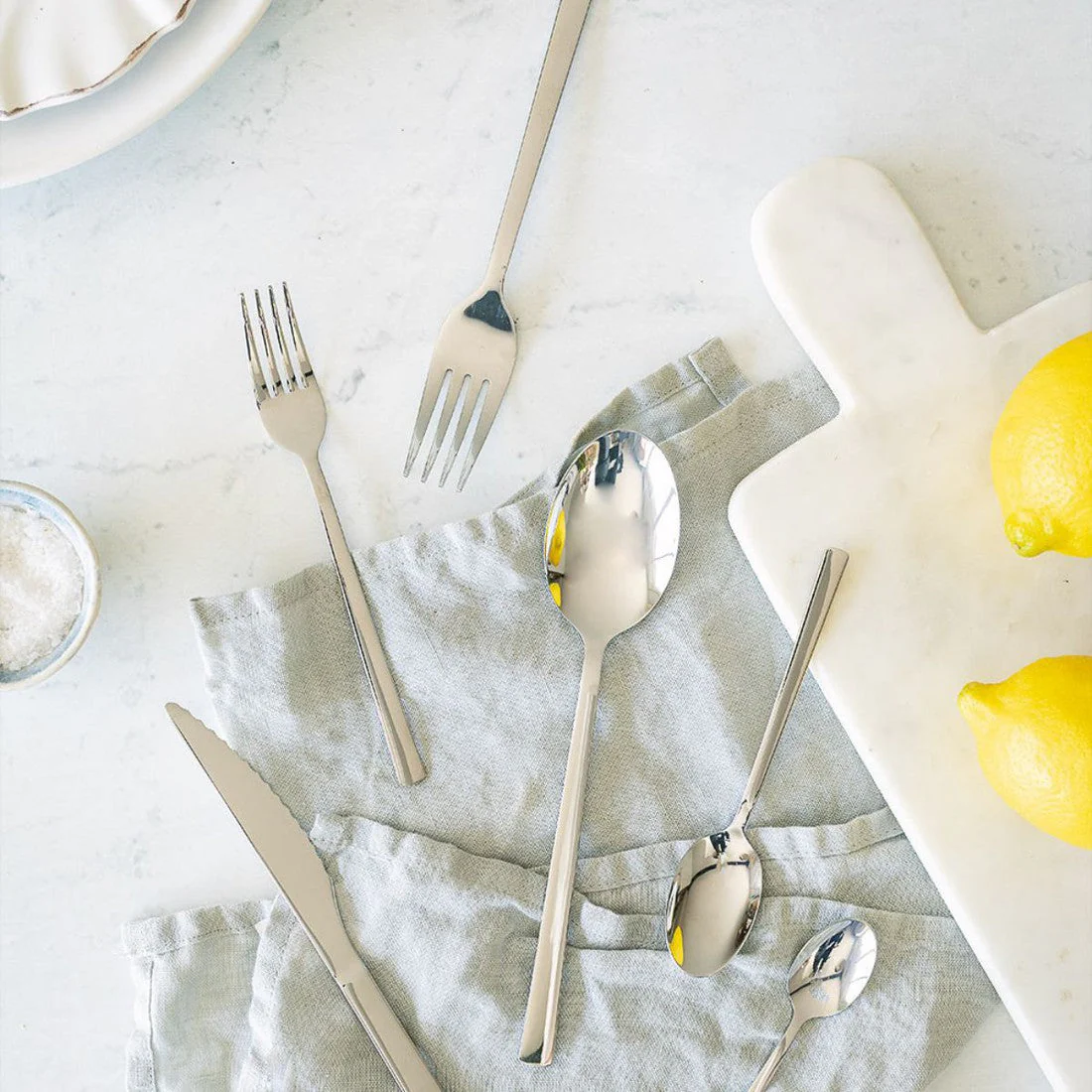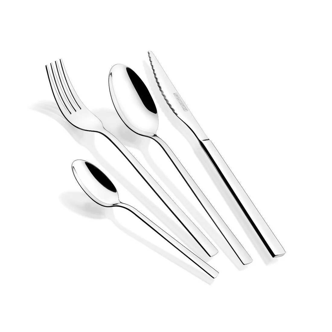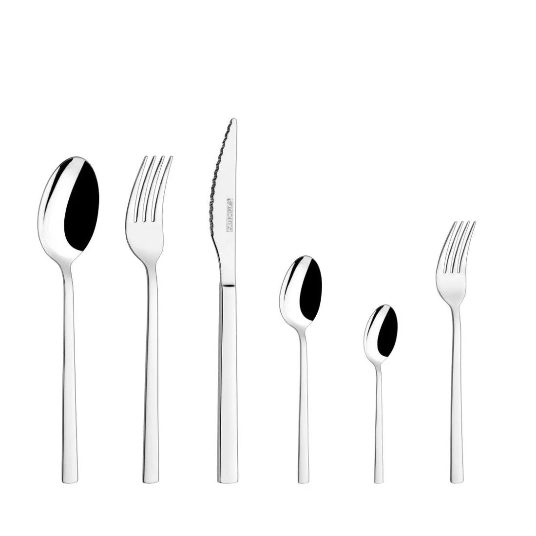 Esta cubertería está fabricada en acero inoxidable 18/0 sin níquel, ofrece un diseño vanguardista de líneas esenciales.
