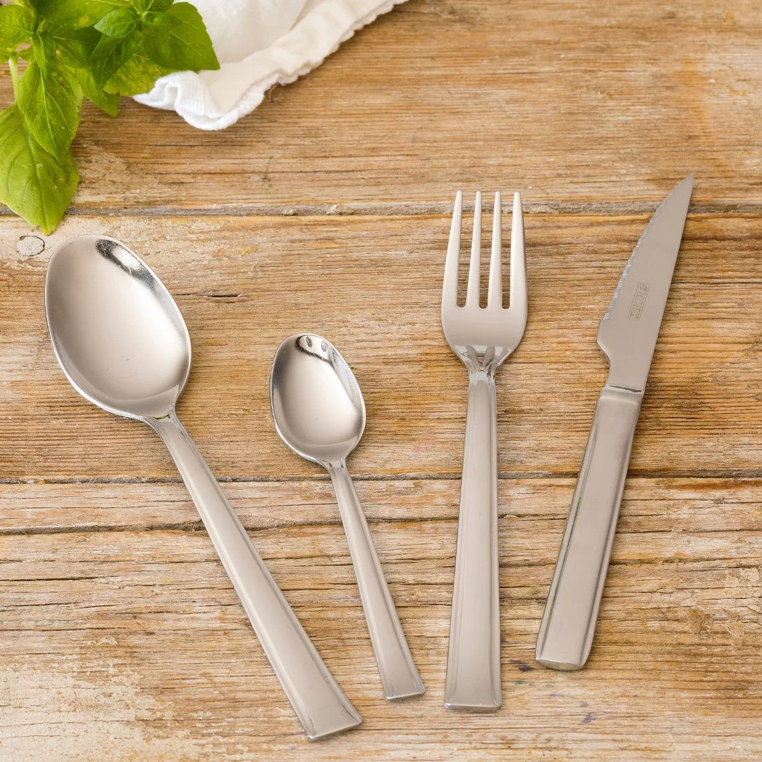 De solo 1,8mm de espesor, es una cubertería ligera, unas piezas básicas para equipar cualquier mesa en el día a día.
