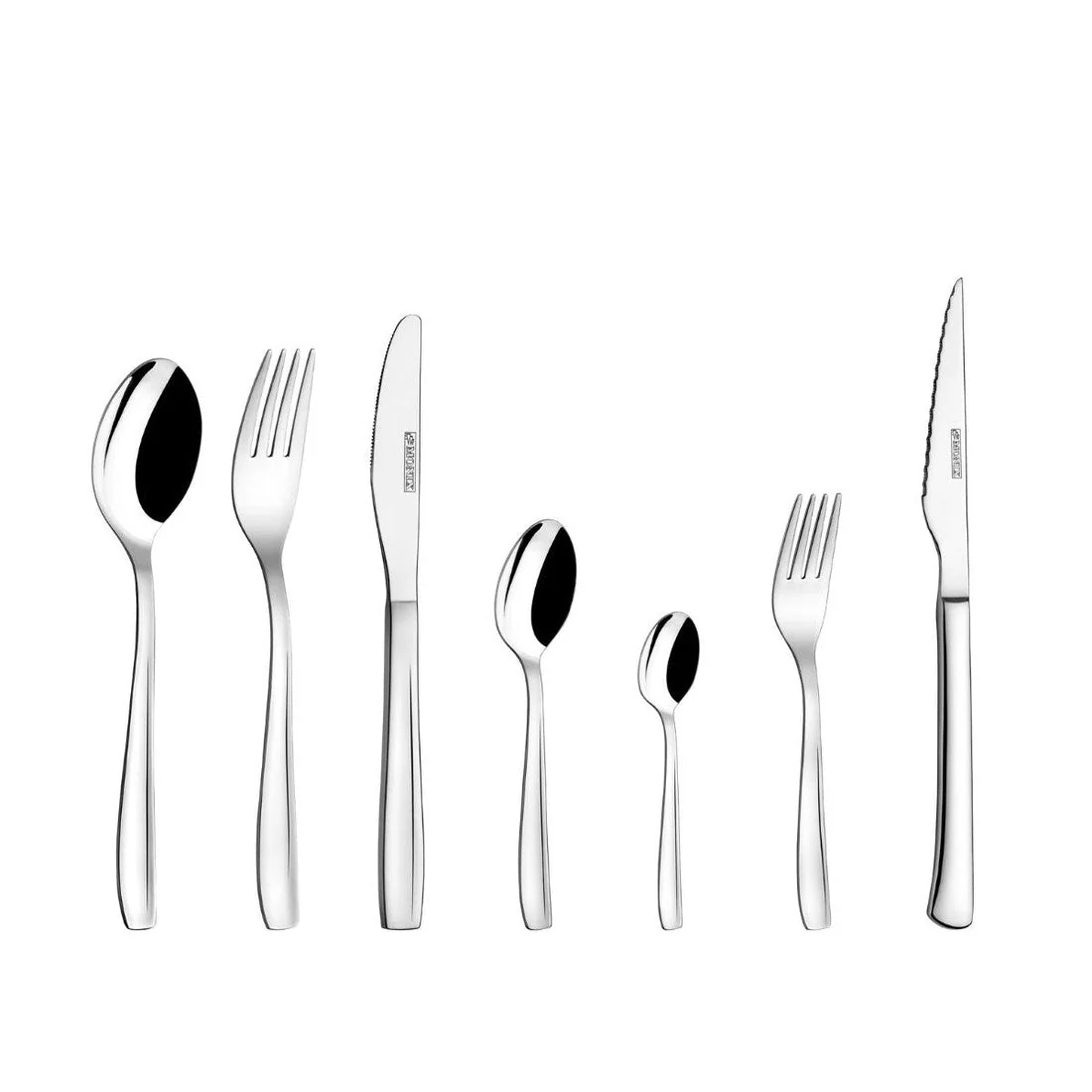 Es una cubertería de acero inoxidable de 1,8 mm de espesor y con la que equipar cualquier mesa.