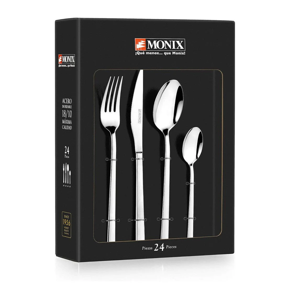 La Cubertería Inglés Monix es una cubertería de diseño moderno, pensado para los que buscan líneas distintas y llamativas, aun manteniendo el dulzor de los mangos curvos y tradicionales.