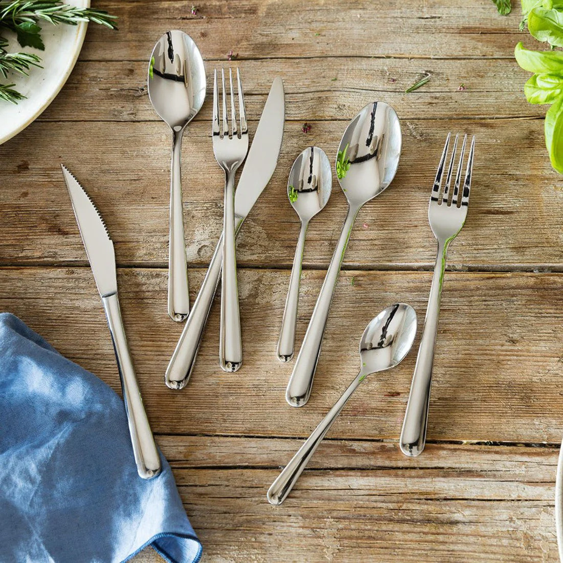 Ya sea para el día a día o para ocasiones especiales, la cubertería Pisa está disponible en piezas sueltas así como en una cubertería entera de 24 piezas.