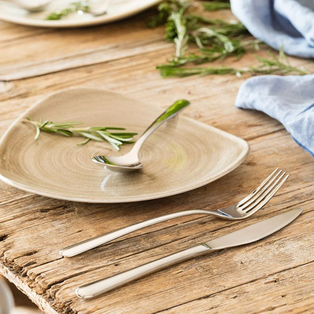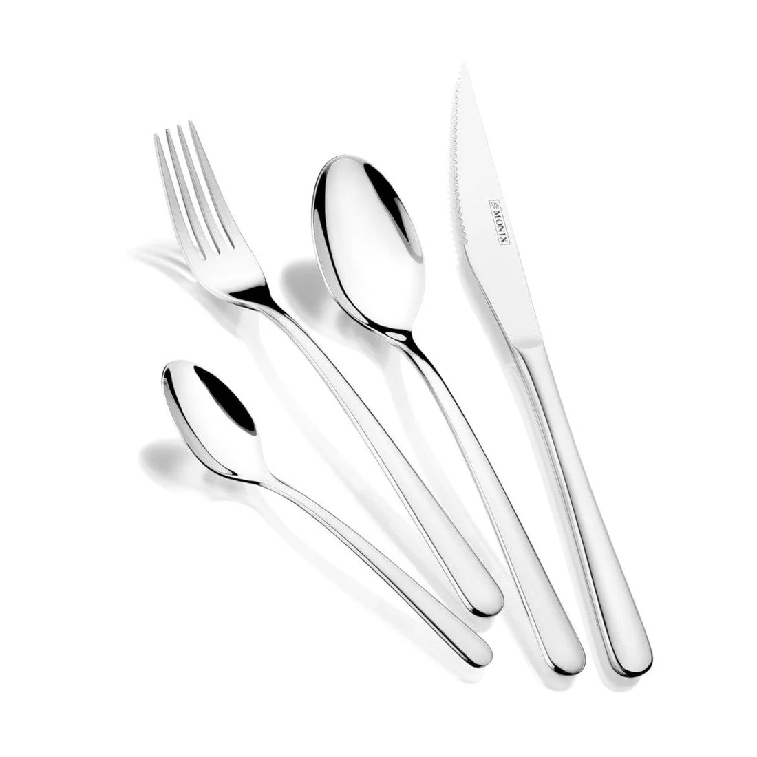 ¡La cubertería Pisa de Monix es una verdadera joya para cualquier hogar! Está fabricada con acero inoxidable 18/10, y un acabado que brilla con luz propia en tu mesa.